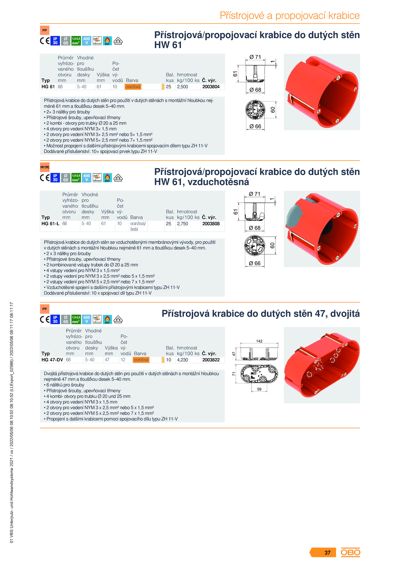Přístrojová krabice dutých stěn pro použití dutých stěnách montážní hloubkou nej-