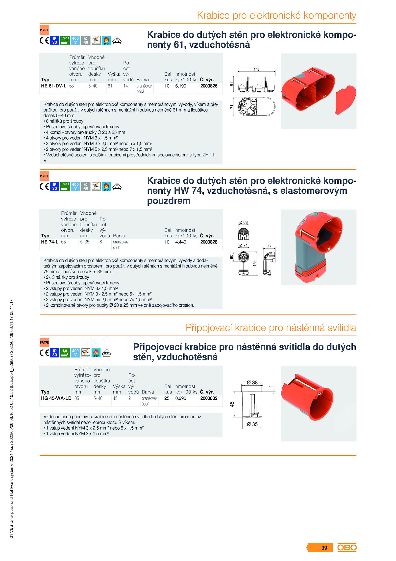 • otvory pro vedení NYM 2,5 mm² nebo 1,5 mm²