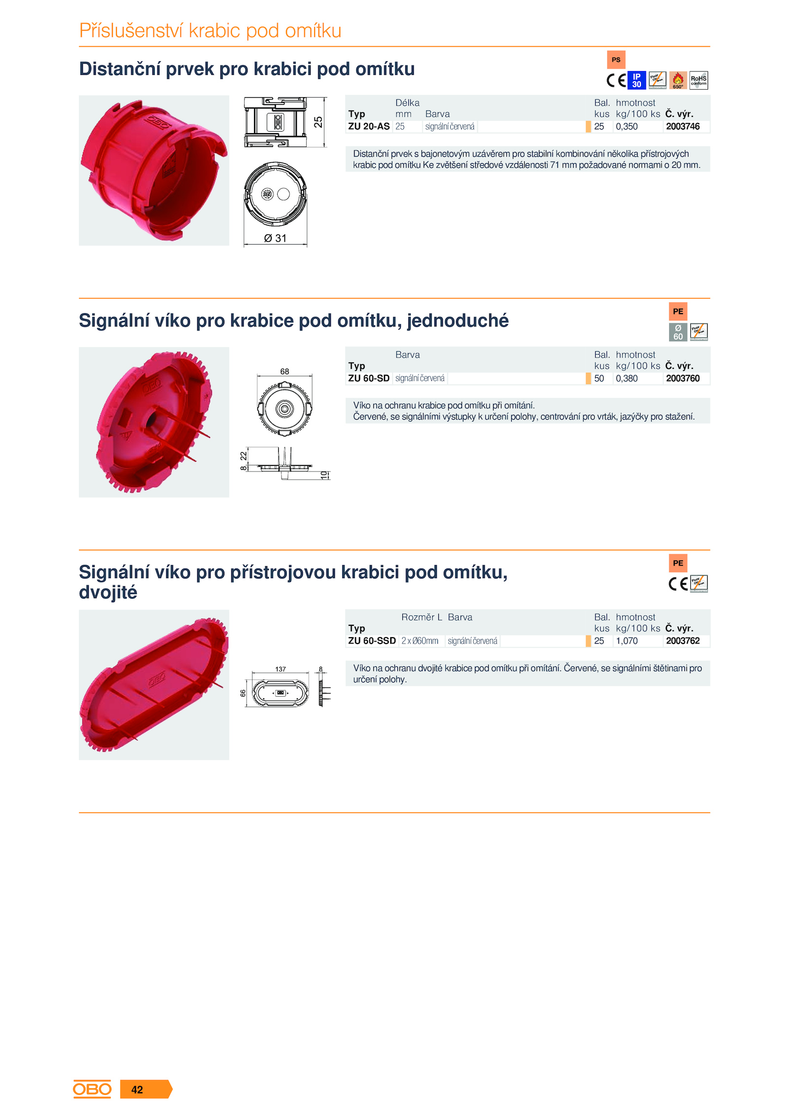Červené, signálními výstupky určení polohy, centrování pro vrták, jazýčky pro stažení.