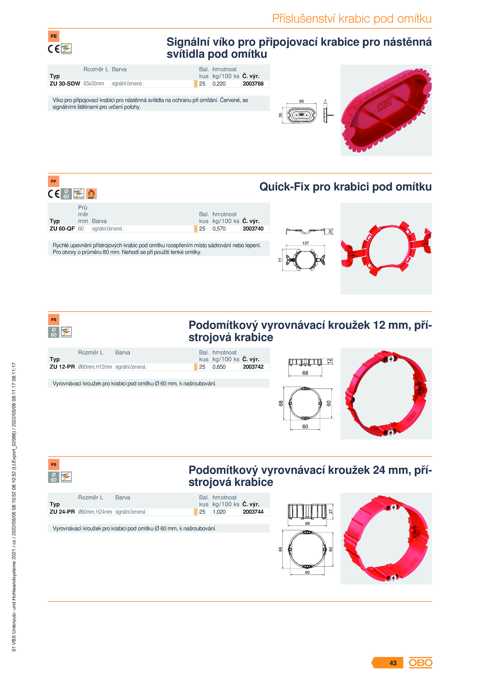Č. výr.Příslušenství krabic pod omítku