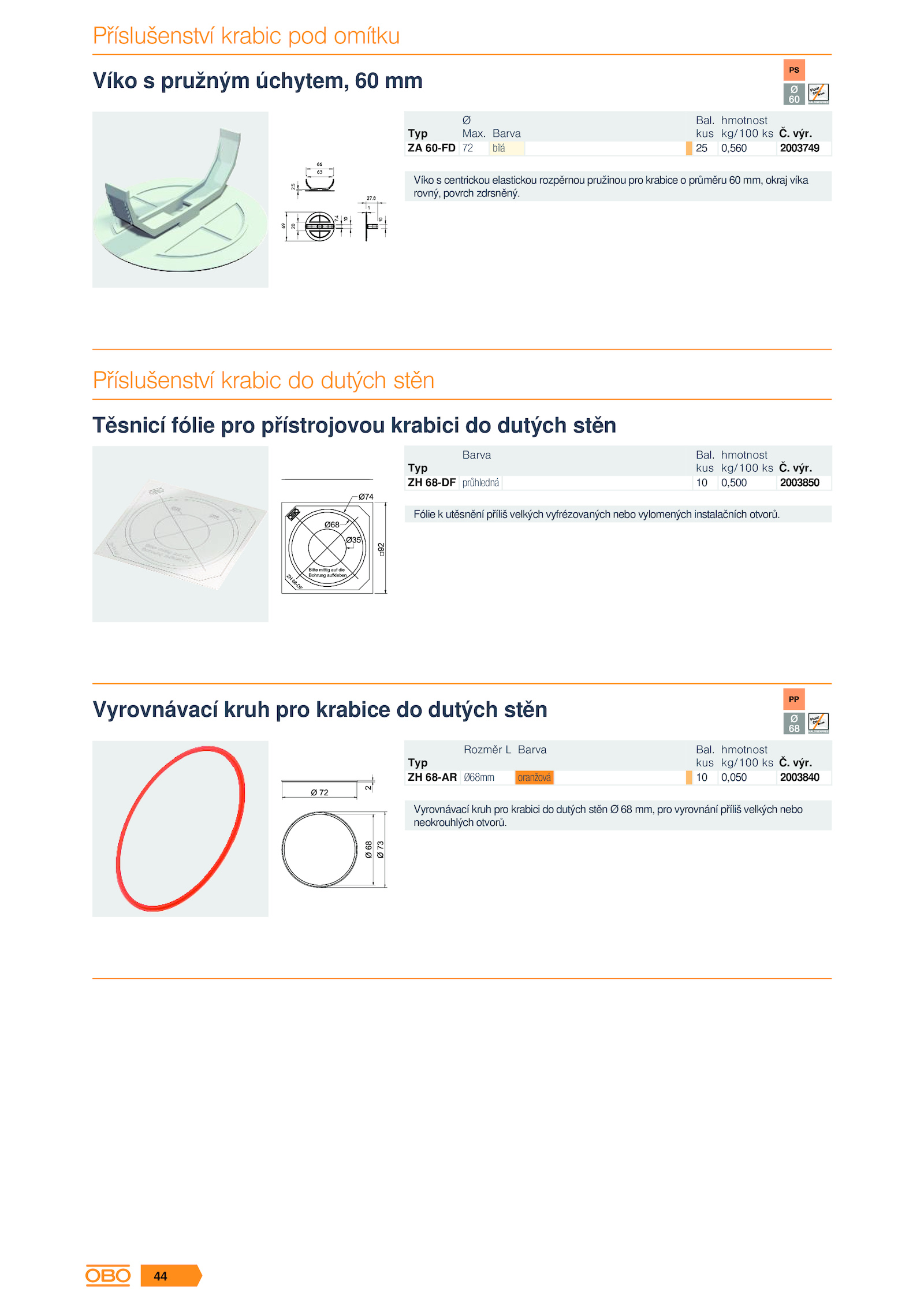 Vyrovnávací kruh pro krabici dutých stěn mm, pro vyrovnání příliš velkých nebo