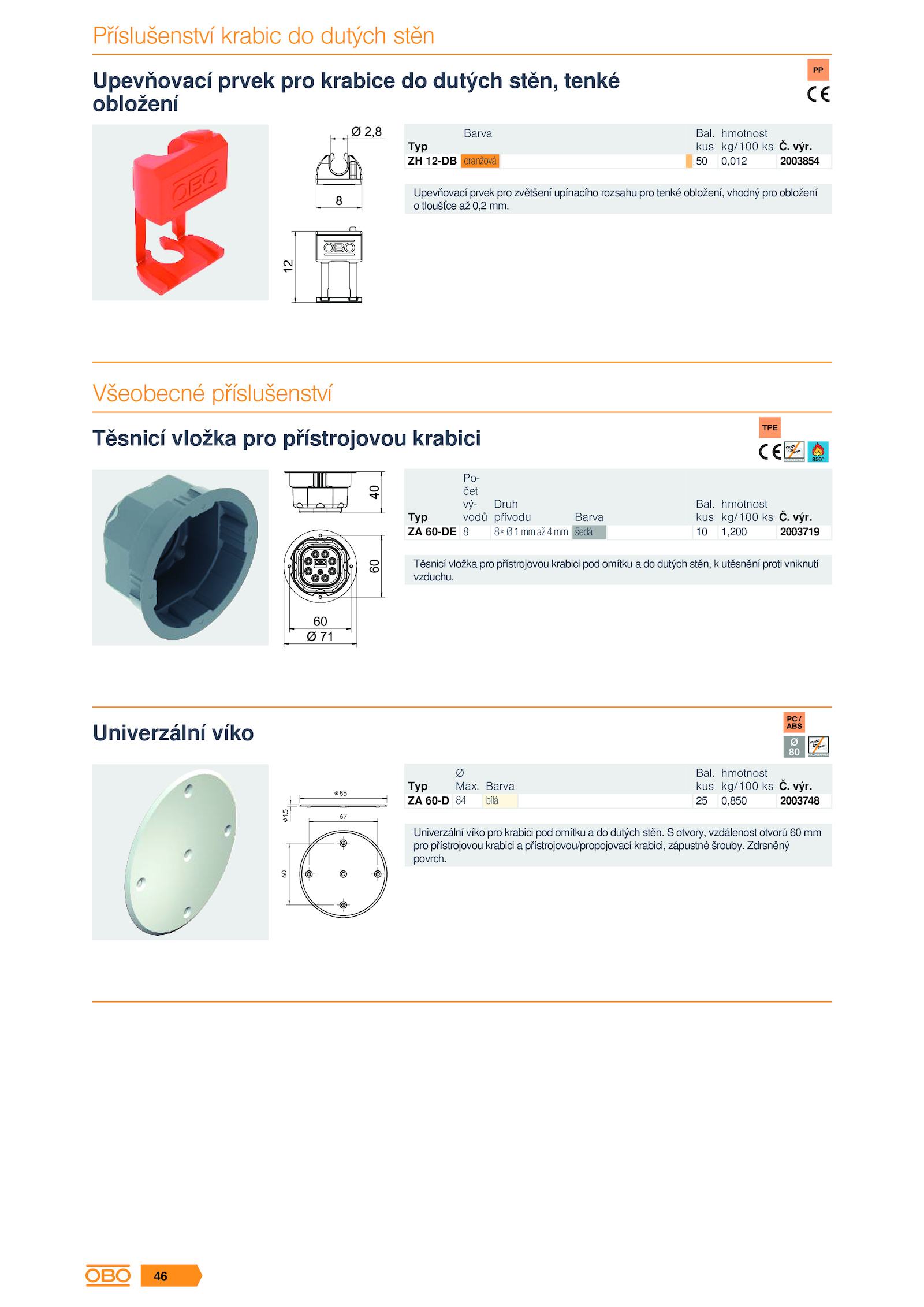 Univerzální víko pro krabici pod omítku dutých stěn.