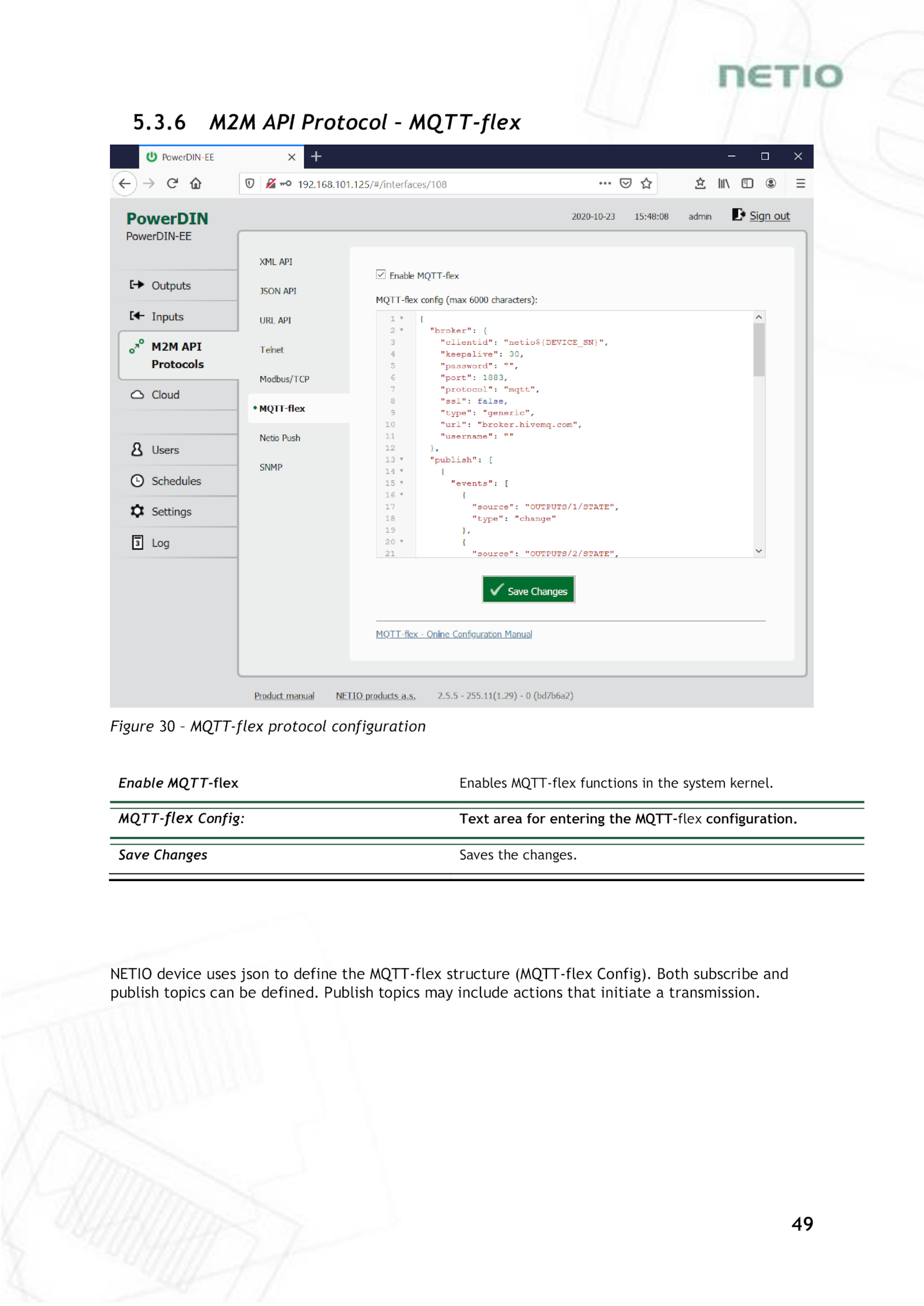 NETIO device uses json define the MQTT-flex structure (MQTT-flex Config).49