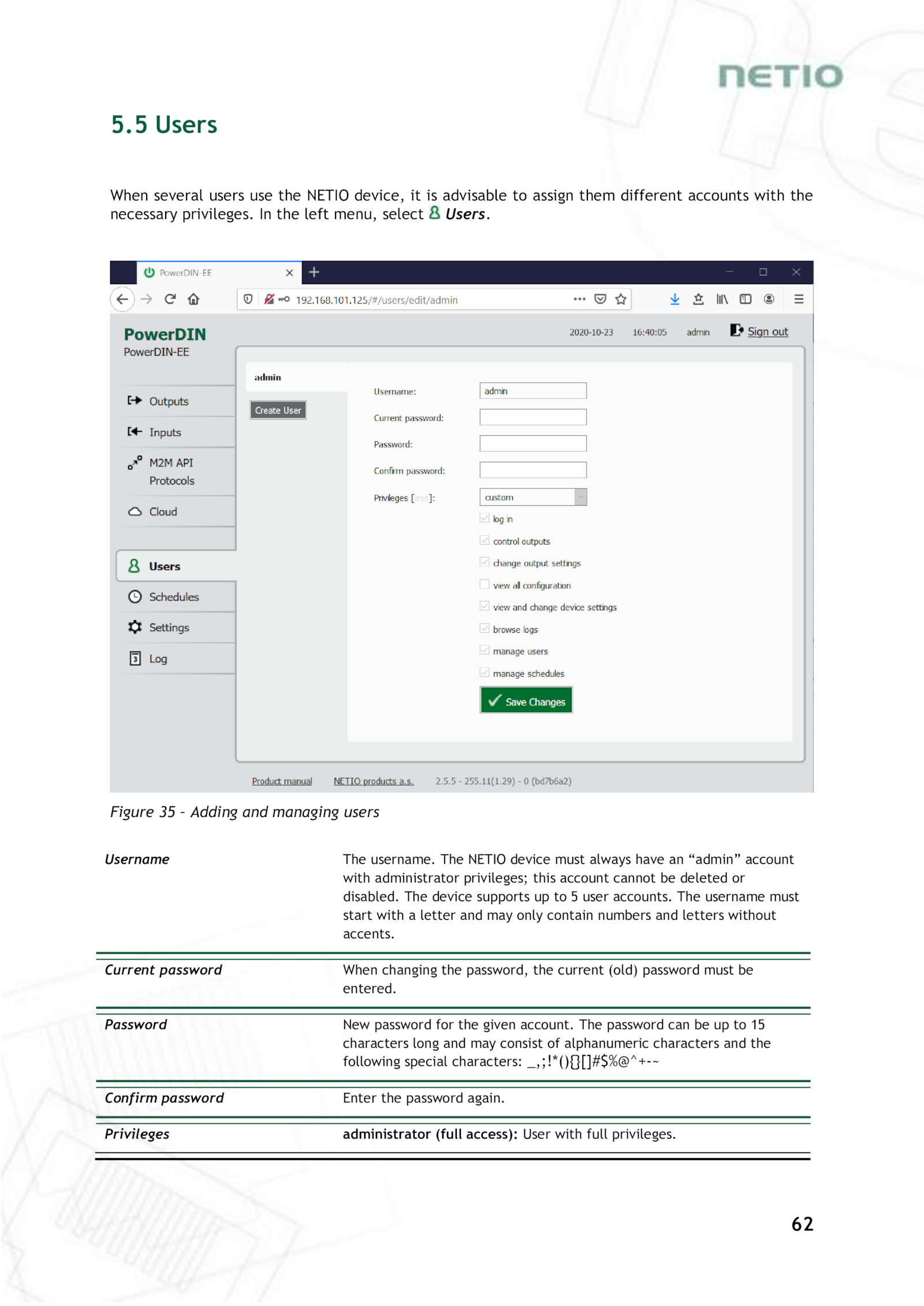 When several users use the NETIO device, advisable assign them different accounts with the