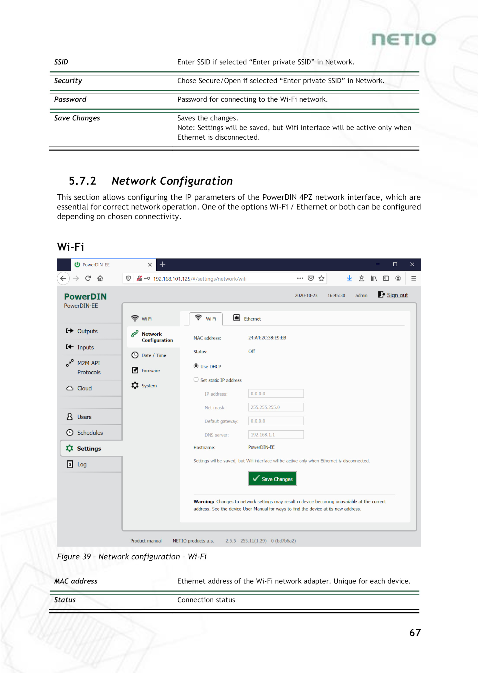 Password Password for connecting the Wi-Fi network. Unique for each device.67