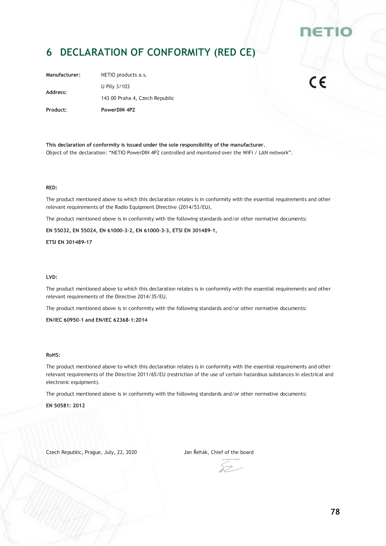 Object the declaration: “NETIO PowerDIN 4PZ controlled and monitored over the WiFi LAN network”.78