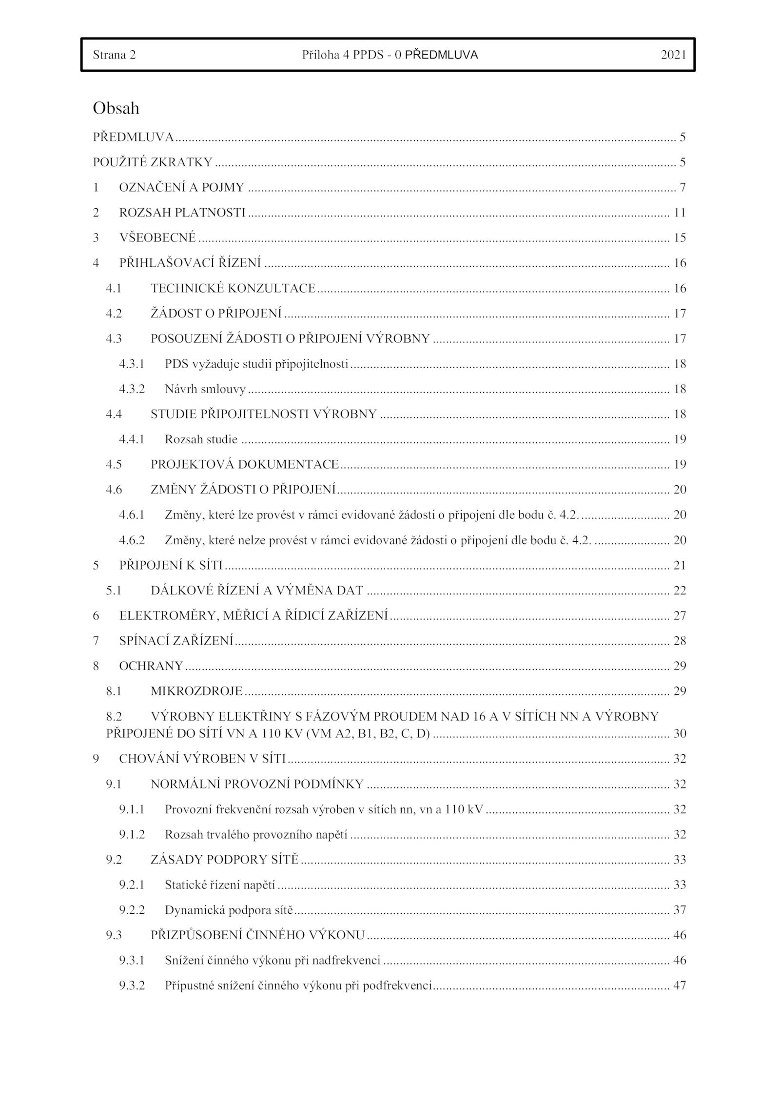 9...............................................................................................................................................1 Změny, které lze provést rámci evidované žádosti připojení dle bodu 4.................................................4...................3 POSOUZENÍ ŽÁDOSTI PŘIPOJENÍ VÝROBNY ..............1 TECHNICKÉ KONZULTACE...Strana Příloha PPDS PŘEDMLUVA 2021