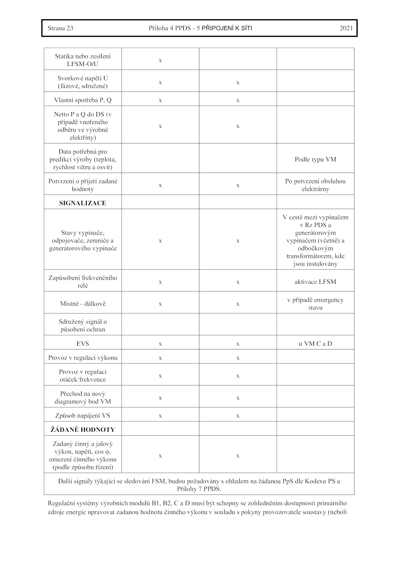 Další signály týkající sledování FSM, budou požadovány ohledem žádanou PpS dle Kodexu a