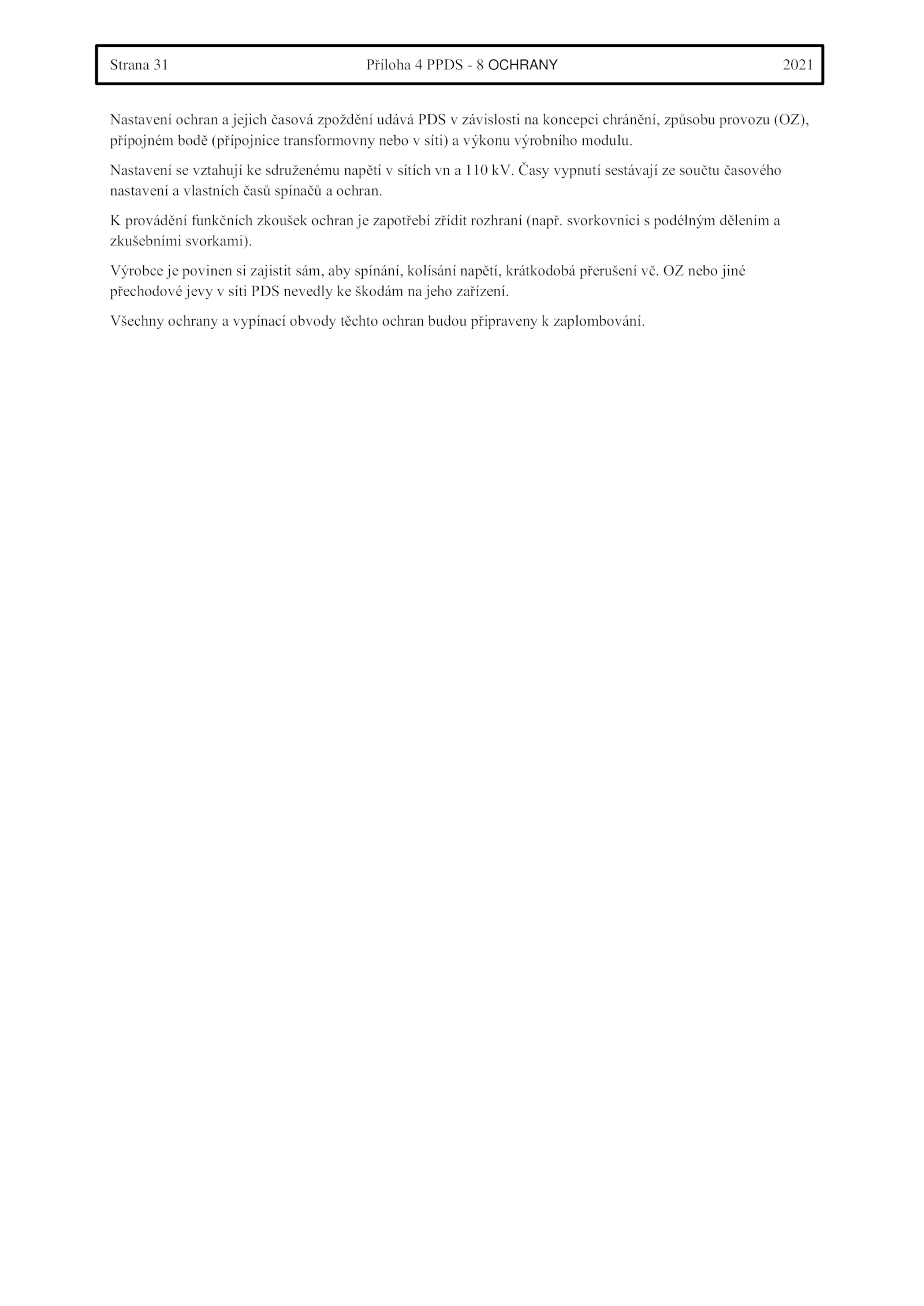 Nastavení ochran jejich časová zpoždění udává PDS závislosti koncepci chránění, způsobu provozu (OZ),