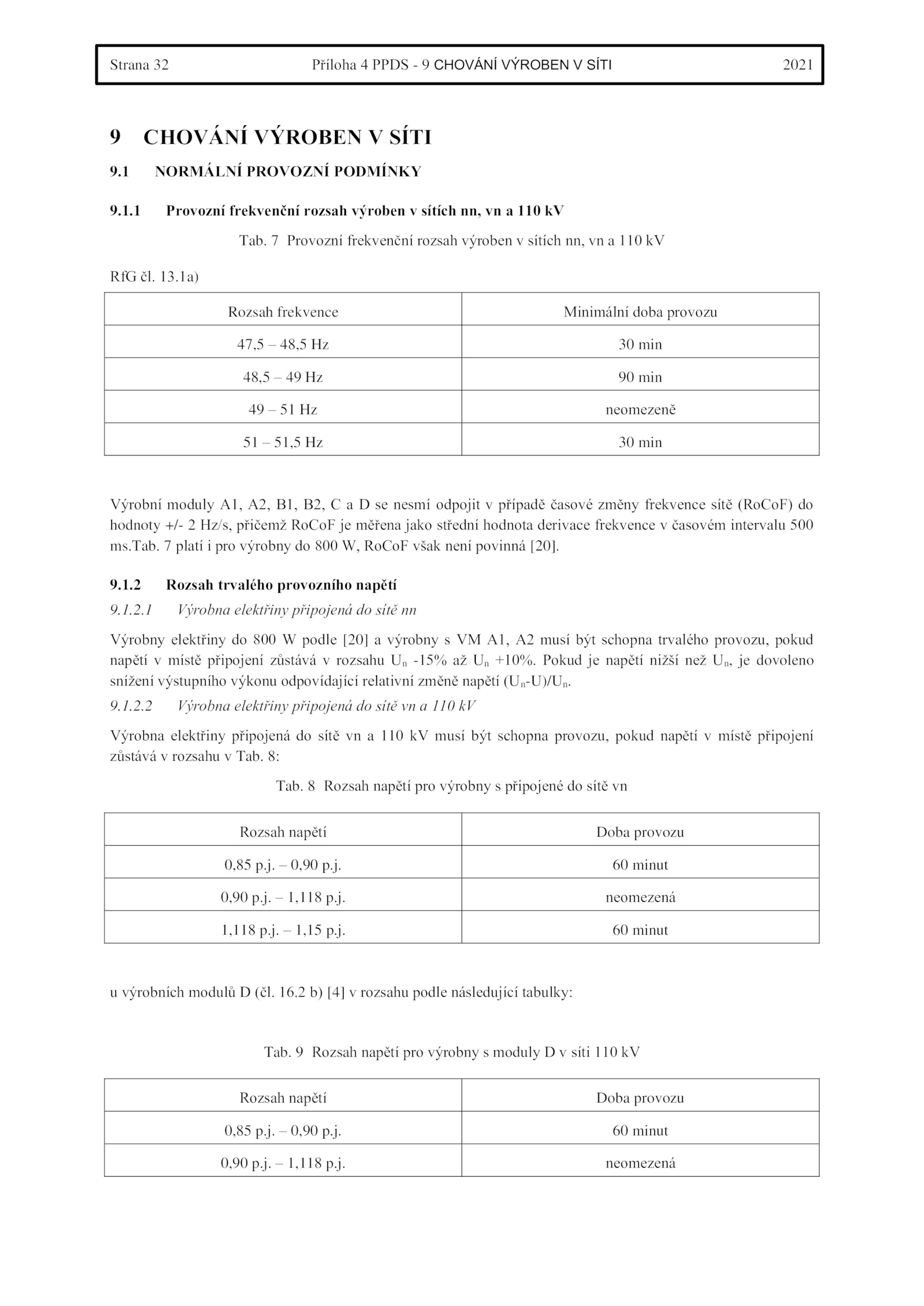 9. 13.Tab.2. Provozní frekvenční rozsah výroben sítích nn, 110 kV