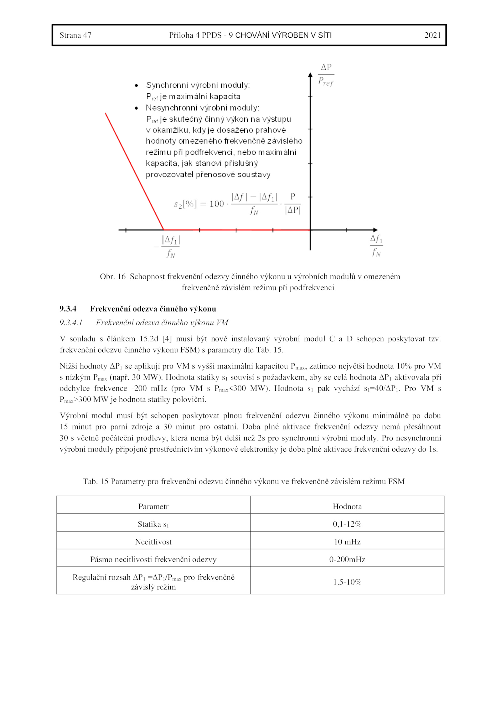 frekvenční odezvu činného výkonu FSM) parametry dle Tab. Schopnost frekvenční odezvy činného výkonu výrobních modulů omezeném