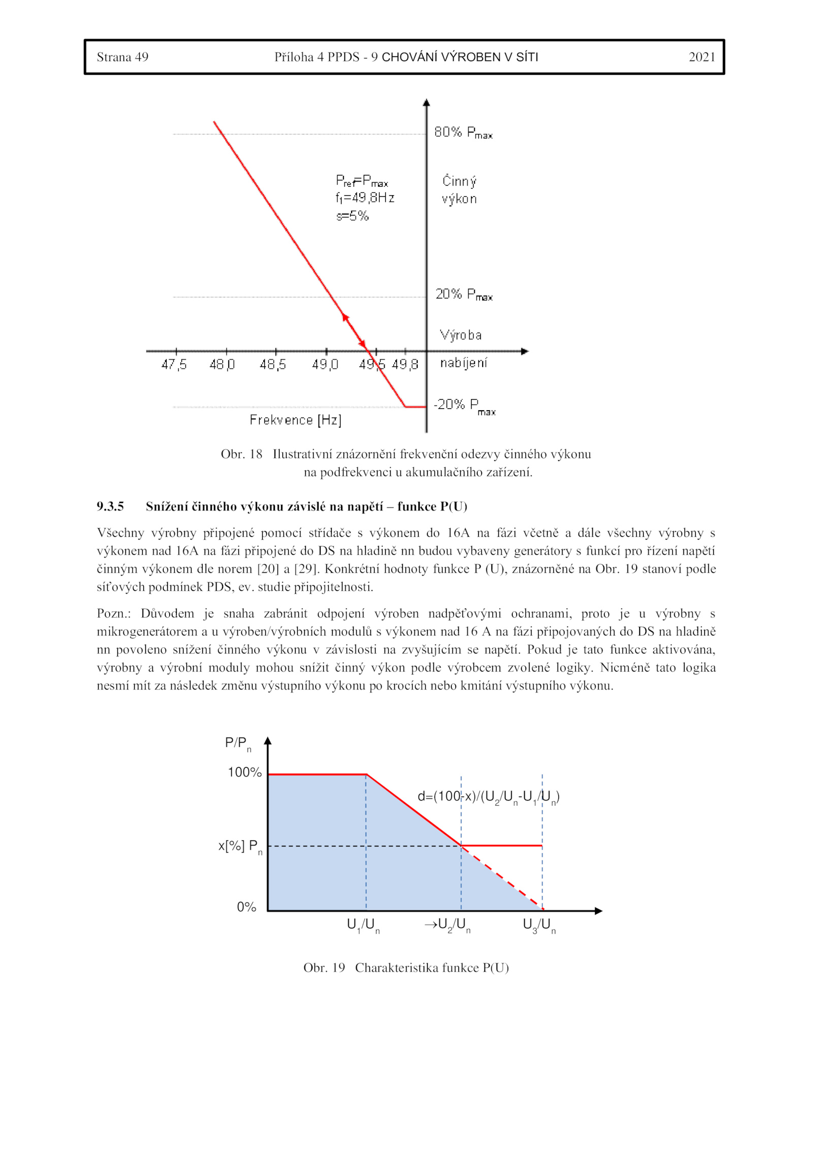 síťových podmínek PDS, ev.3. Konkrétní hodnoty funkce (U), znázorněné Obr. studie připojitelnosti.5 Snížení činného výkonu závislé napětí funkce P(U)