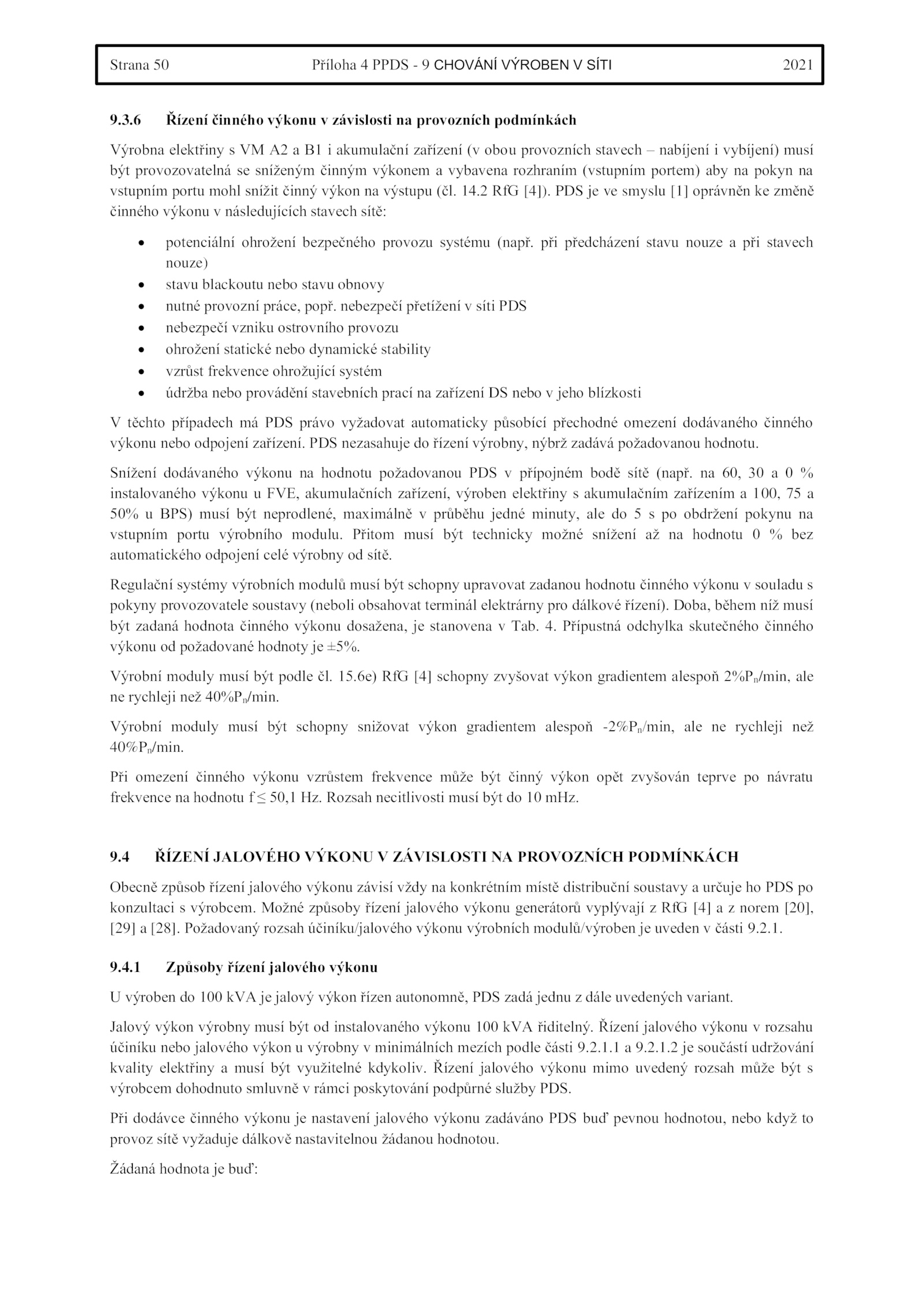 být zadaná hodnota činného výkonu dosažena, stanovena Tab.Strana Příloha PPDS CHOVÁNÍ VÝROBEN SÍTI 2021