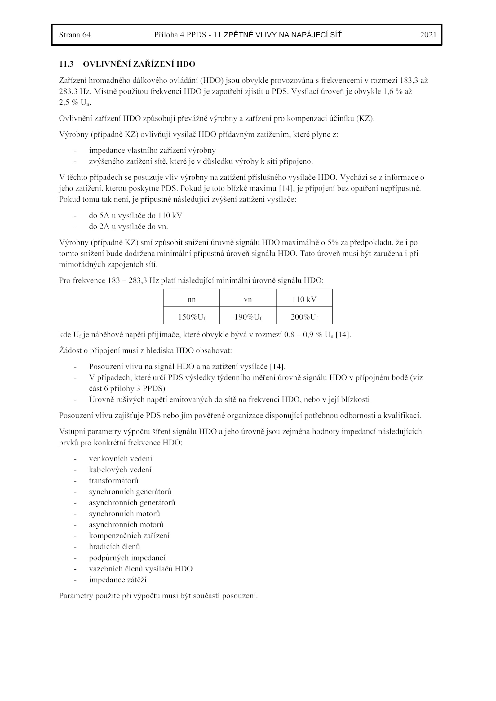 tomto snížení bude dodržena minimální přípustná úroveň signálu HDO.Strana Příloha PPDS ZPĚTNÉ VLIVY NAPÁJECÍ SÍŤ 2021