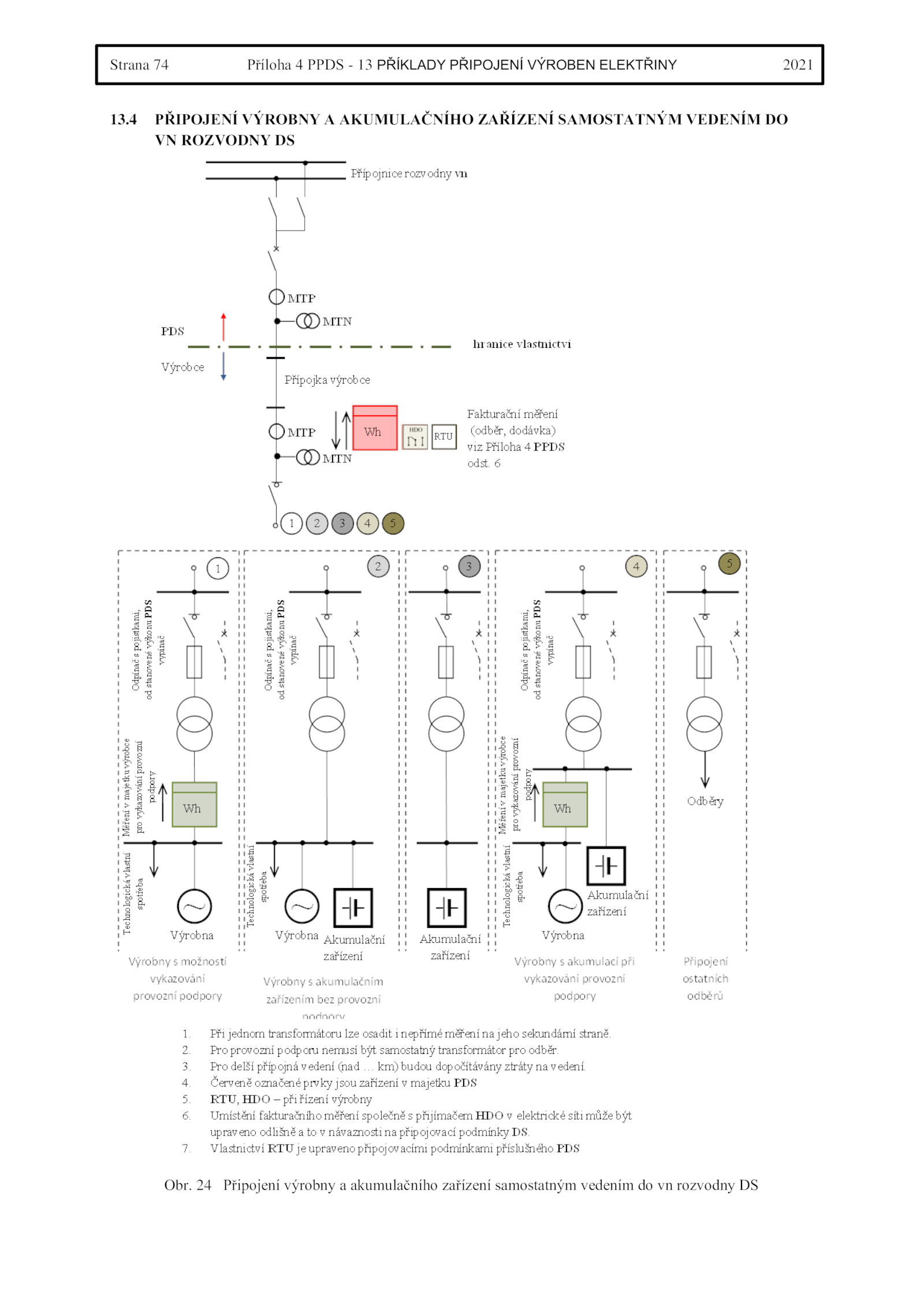4 PŘIPOJENÍ VÝROBNY AKUMULAČNÍHO ZAŘÍZENÍ SAMOSTATNÝM VEDENÍM DO VN ROZVODNY DS Obr.Strana Příloha PPDS PŘÍKLADY PŘIPOJENÍ VÝROBEN ELEKTŘINY 2021 13. Připojení výrobny akumulačního zařízení samostatným vedením rozvodny DS