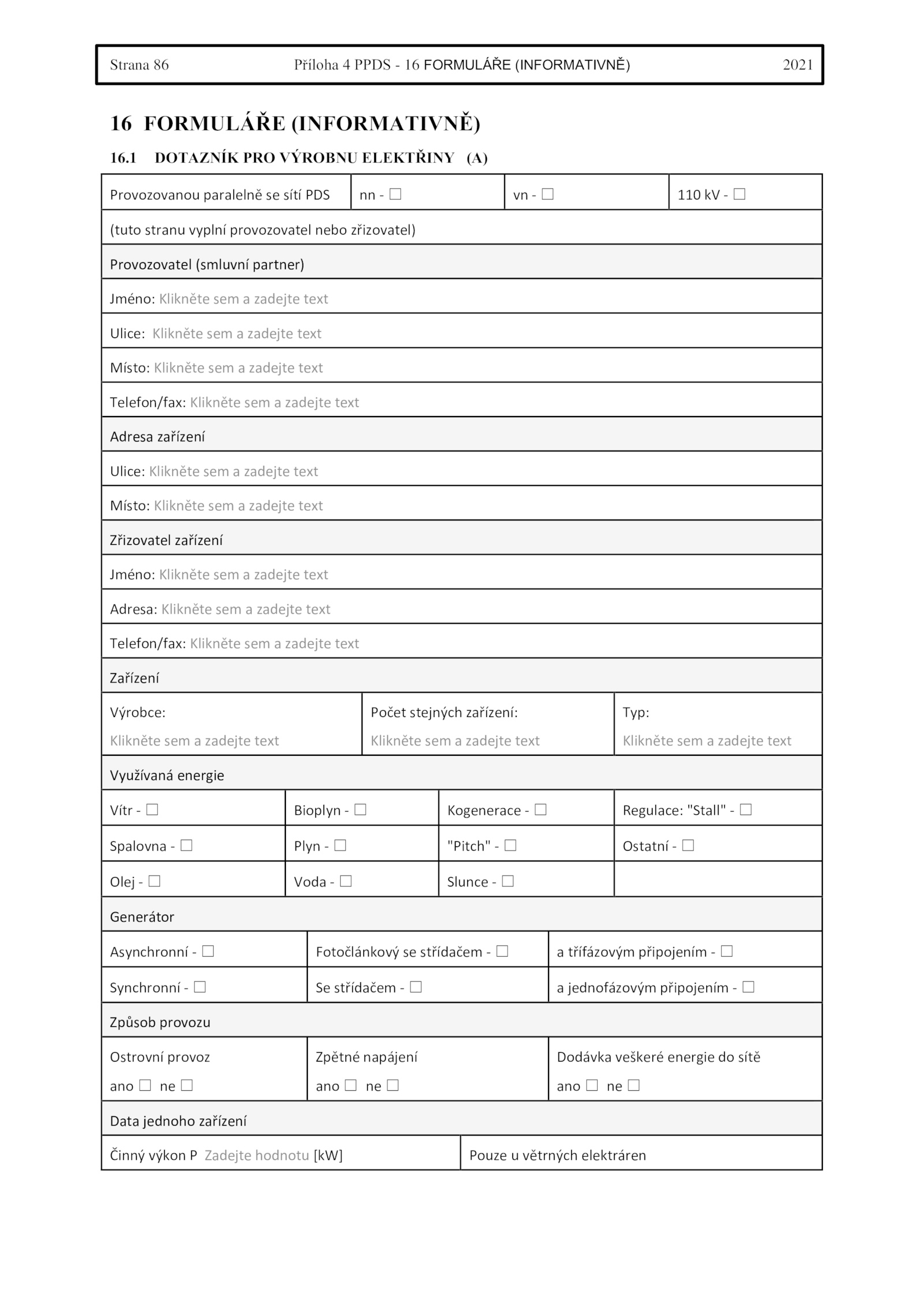 16.1 DOTAZNÍK PRO VÝROBNU ELEKTŘINY (A)