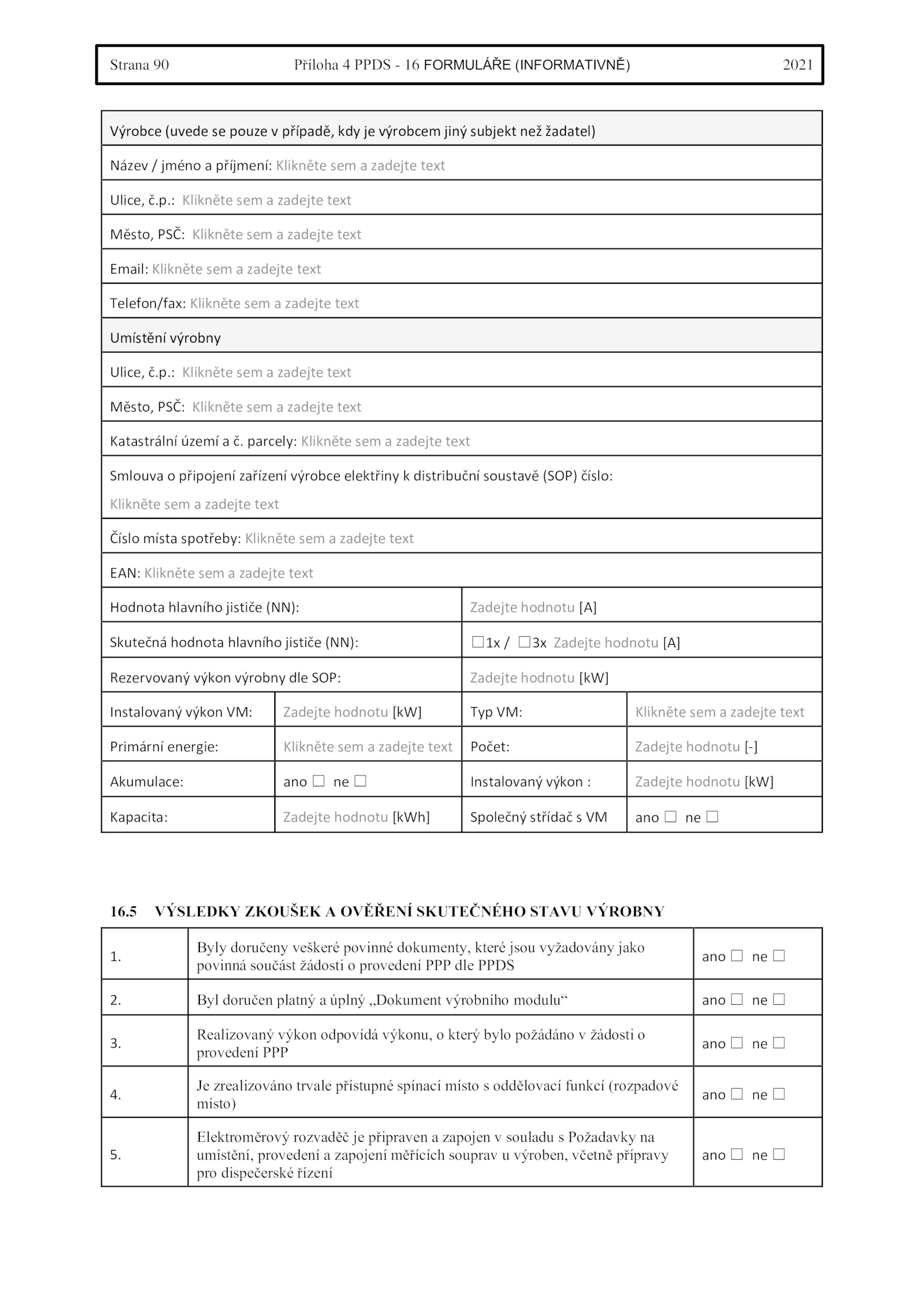 16. Byl doručen platný úplný „Dokument výrobního modulu“ ano ☐