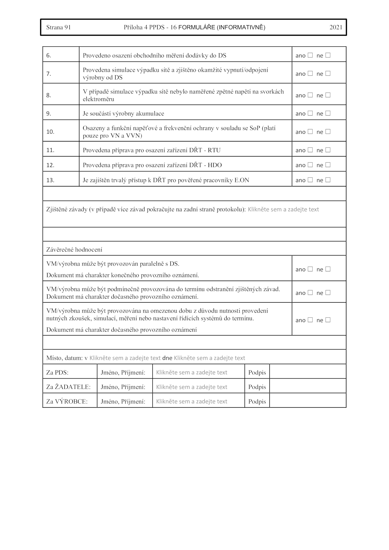 Dokument charakter konečného provozního oznámení.Strana Příloha PPDS FORMULÁŘE (INFORMATIVNĚ) 2021