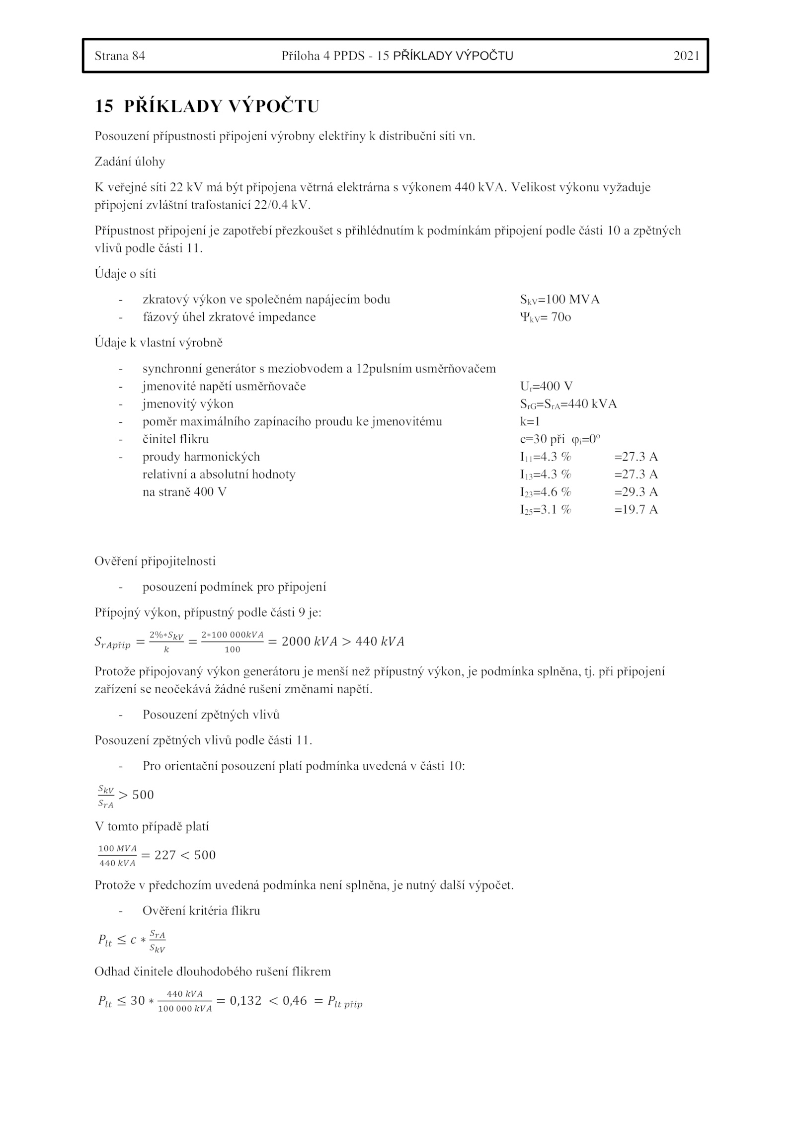 Posouzení zpětných vlivů podle části 11.Strana Příloha PPDS PŘÍKLADY VÝPOČTU 2021