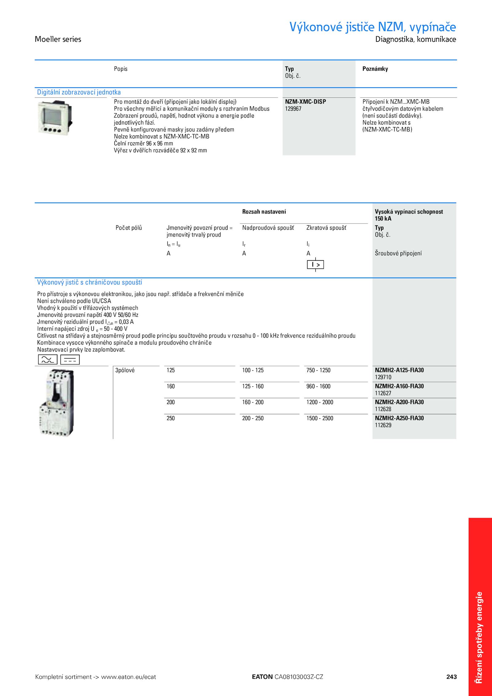 Pro přístroje výkonovou elektronikou, jako jsou např.eu/ecat EATON CORPORATION CA08103003Z-CS 243