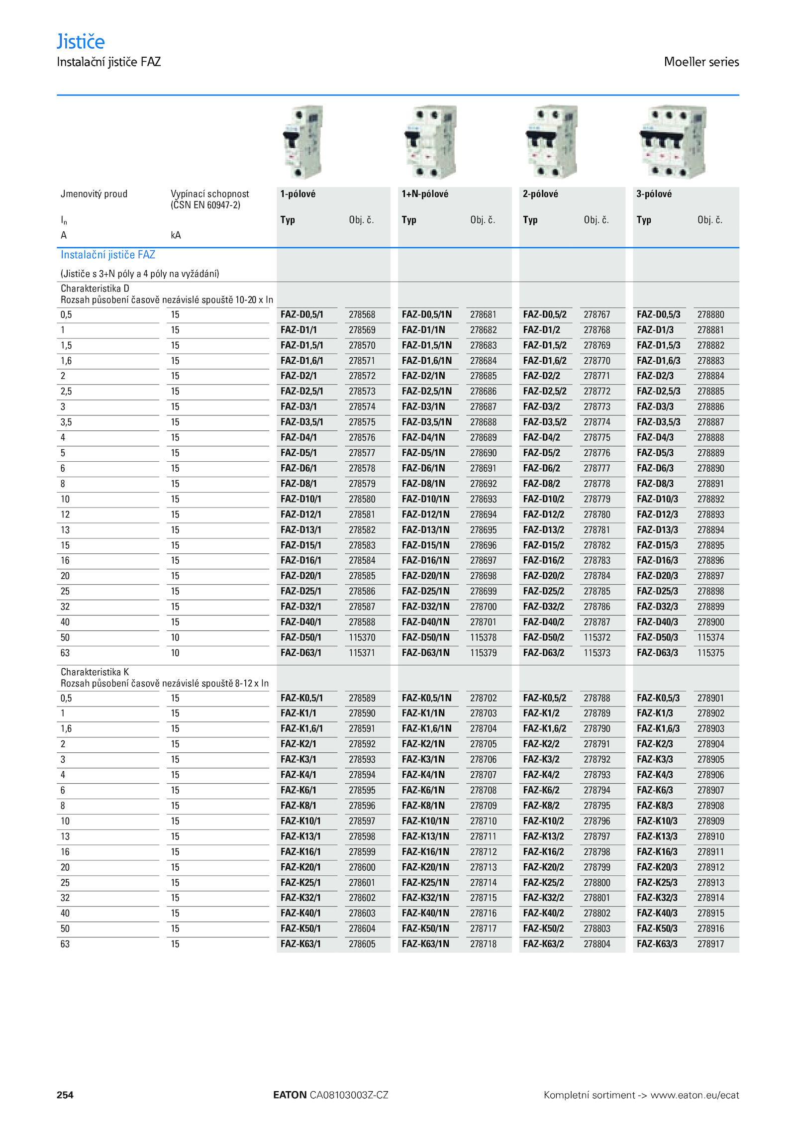 254 EATON CA08103003Z-CZ Kompletní sortiment www. Typ Obj. Typ Obj. Typ Obj. č.eu/ecat