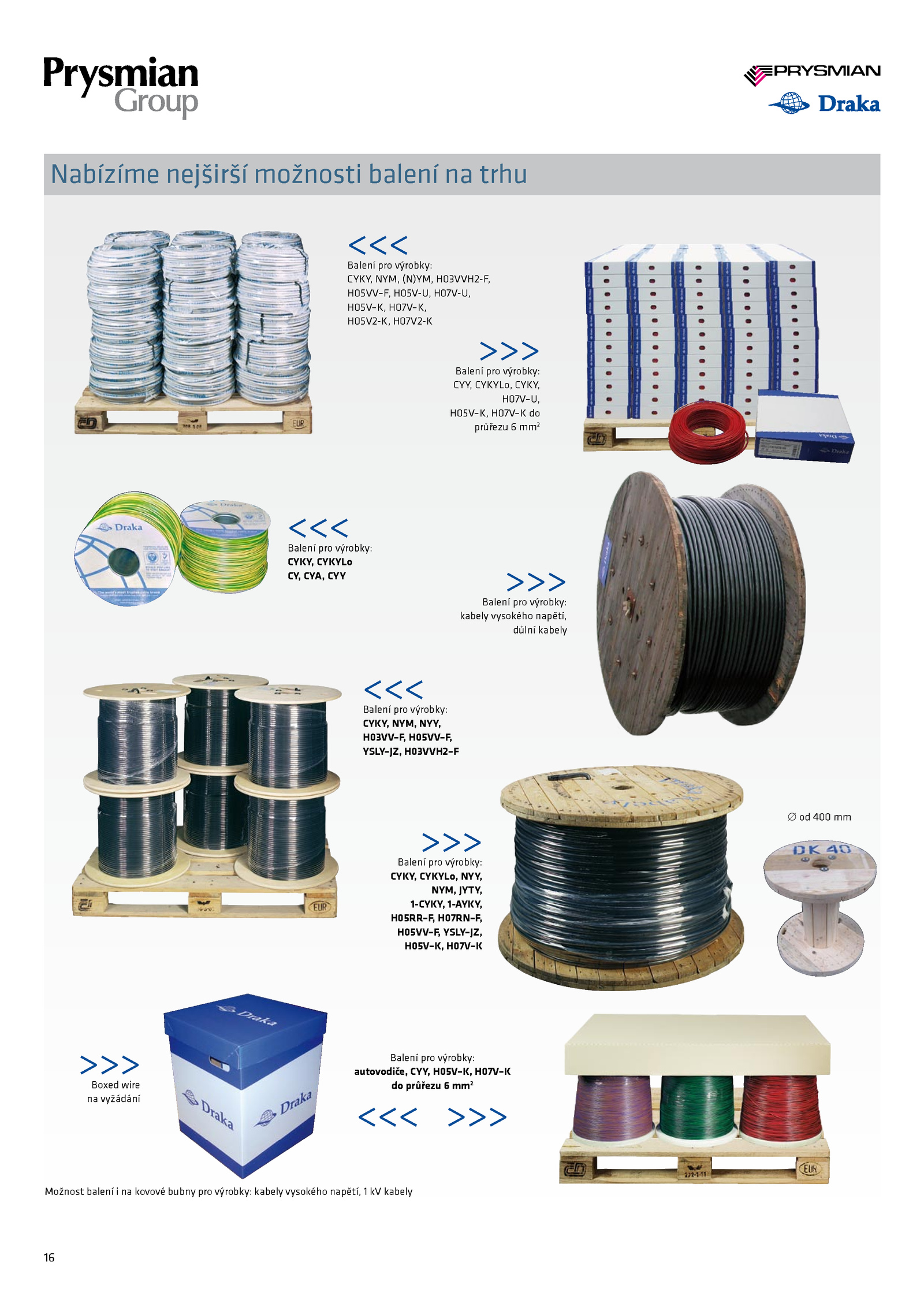 Možnost balení i na kovové bubny pro výrobky: kabely vysokého napětí, kabely