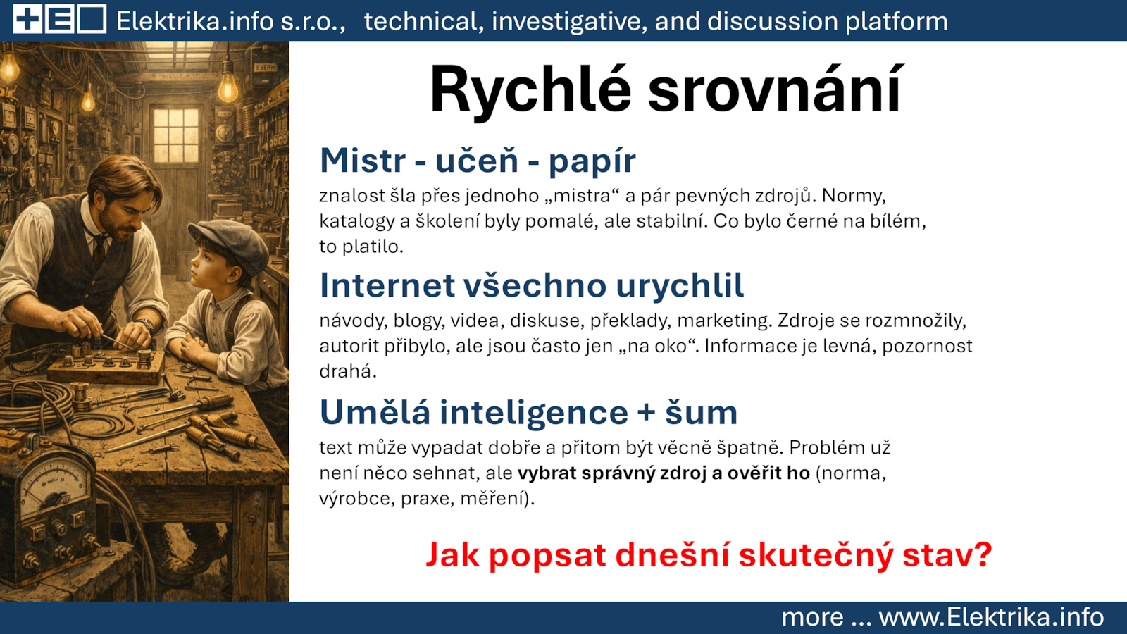 znalost šla přes jednoho „mistra“ pár pevných zdrojů.Elektrika. Normy,