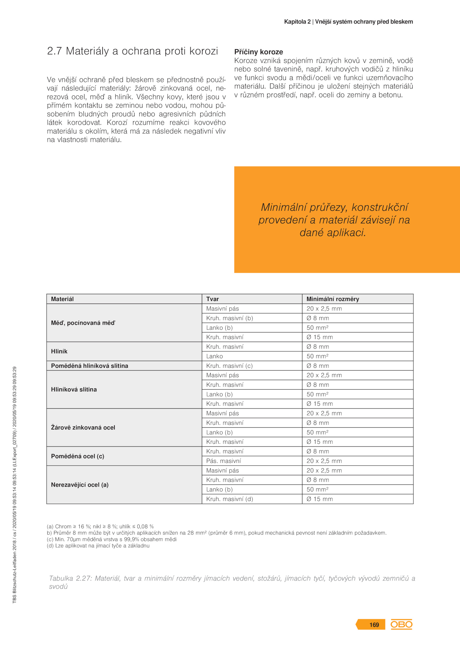 Kruh.27: Materiál, tvar minimální rozměry jímacích vedení, stožárů, jímacích tyčí, tyčových vývodů zemničů a