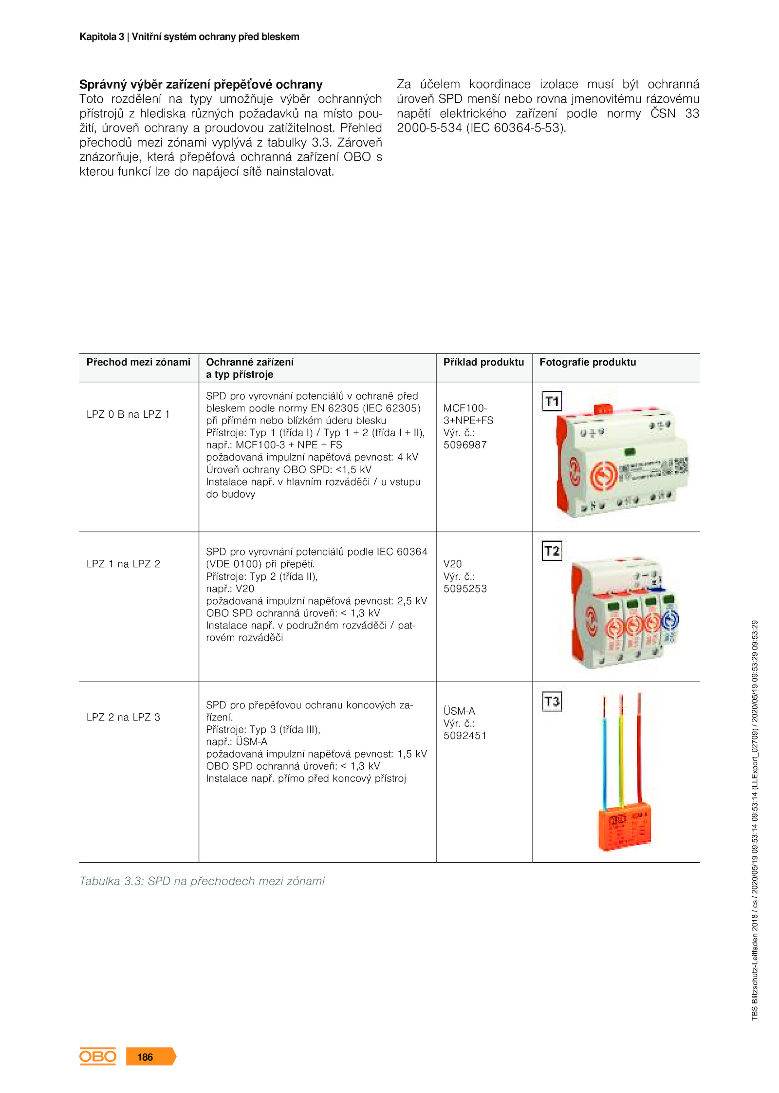 znázorňuje, která přepěťová ochranná zařízení OBO s