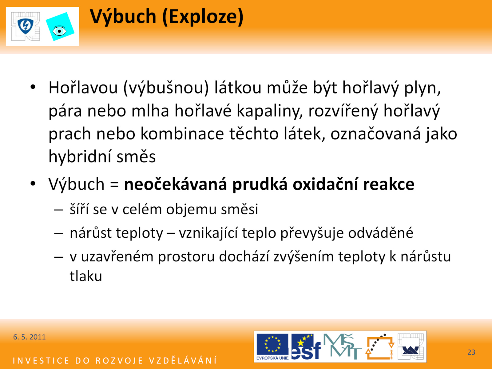 • Výbuch neočekávaná prudká oxidační reakce