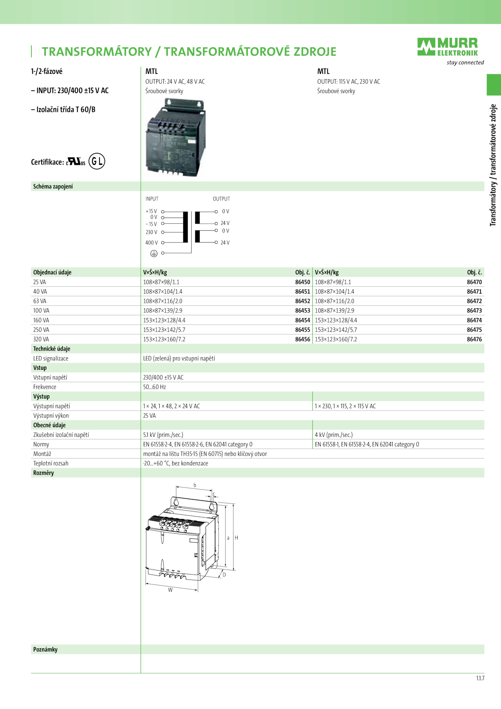 Objednací údaje V׊×H/kg Obj..1.1.+60 °C, bez kondenzace