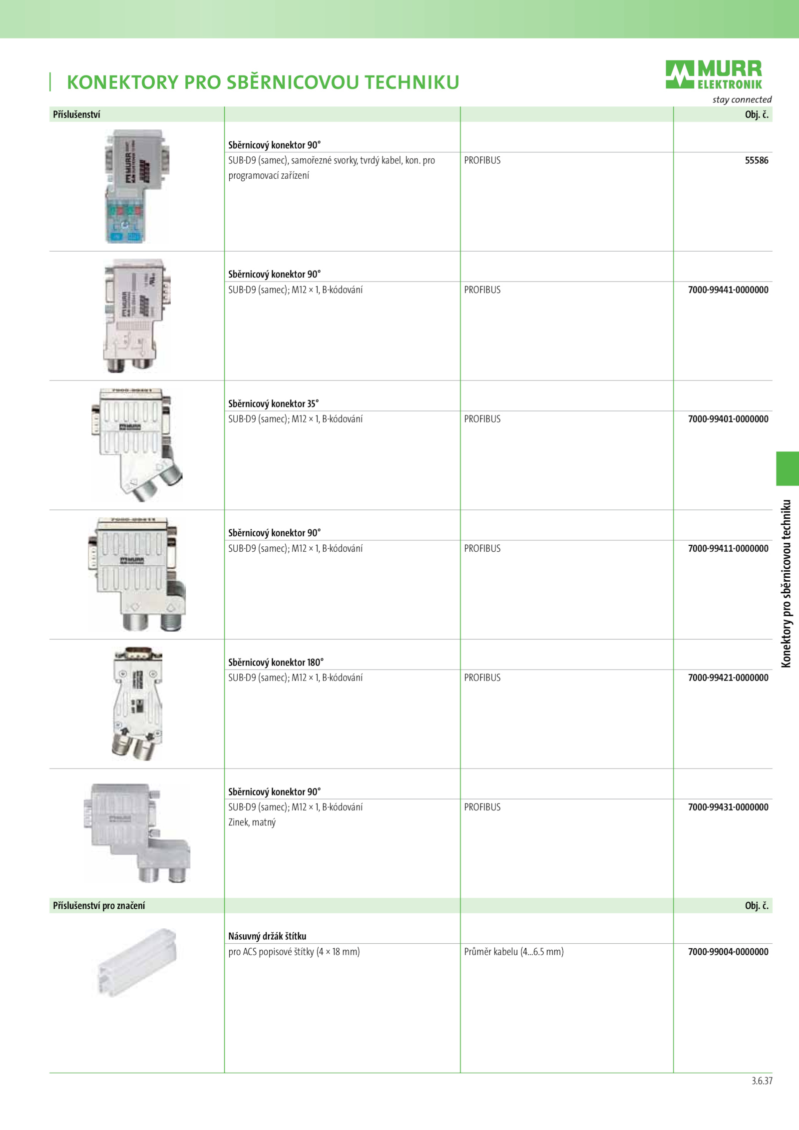 .. pro programovací zařízení PROFIBUS Sběrnicový konektor 90° SUB-D9 (samec); M12 B-kódování PROFIBUS Sběrnicový konektor 35° SUB-D9 (samec); M12 B-kódování PROFIBUS Sběrnicový konektor 90° SUB-D9 (samec); M12 B-kódování PROFIBUS Sběrnicový konektor 180° SUB-D9 (samec); M12 B-kódování PROFIBUS Sběrnicový konektor 90° SUB-D9 (samec); M12 B-kódování Zinek, matný PROFIBUS Příslušenství pro značení Obj. č. Sběrnicový konektor 90° SUB-D9 (samec), samořezné svorky, tvrdý kabel, kon.3.6. Násuvný držák štítku pro ACS popisové štítky mm) Průměr kabelu (4.37 Konektory pro sběrnicovou techniku Konektory pro sběrnicovou techniku Příslušenství Obj. č.5 mm) 55586 7000-99441-0000000 7000-99401-0000000 7000-99411-0000000 7000-99421-0000000 7000-99431-0000000 7000-99004-0000000 .6