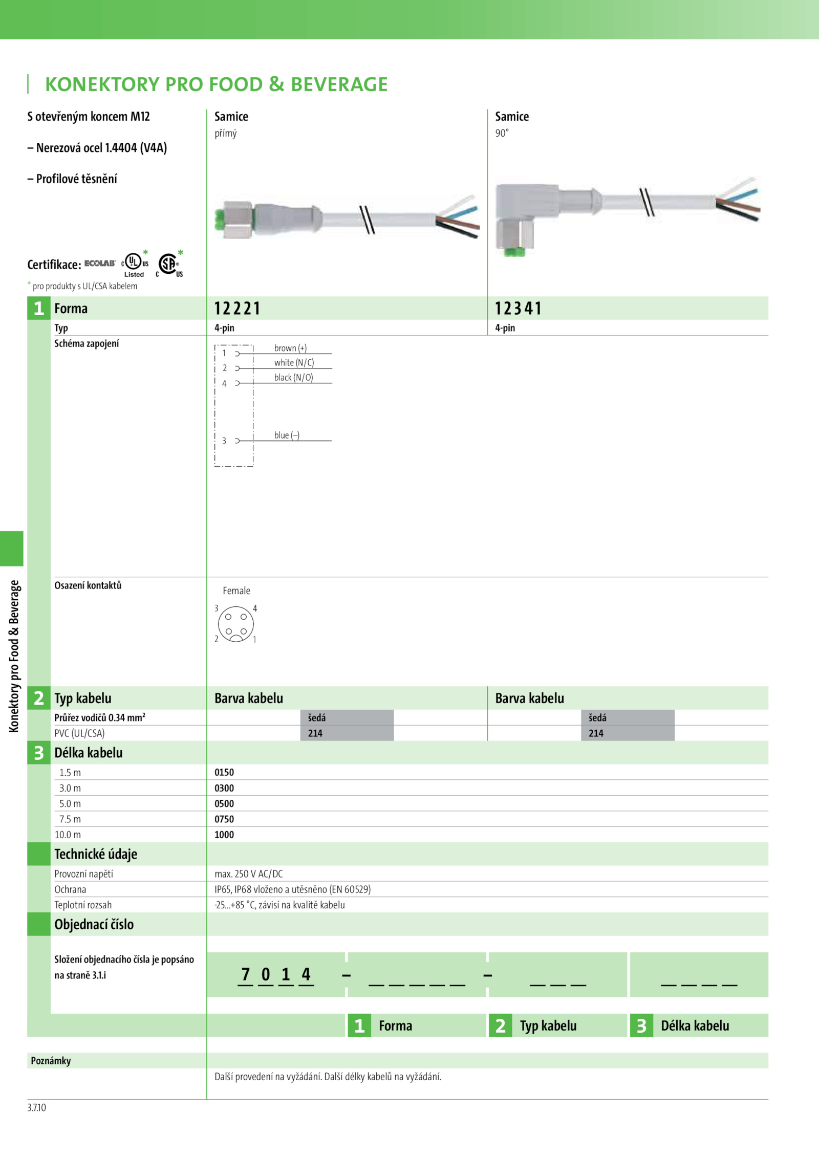 Teplotní rozsah -25. Další délky kabelů vyžádání.5 m