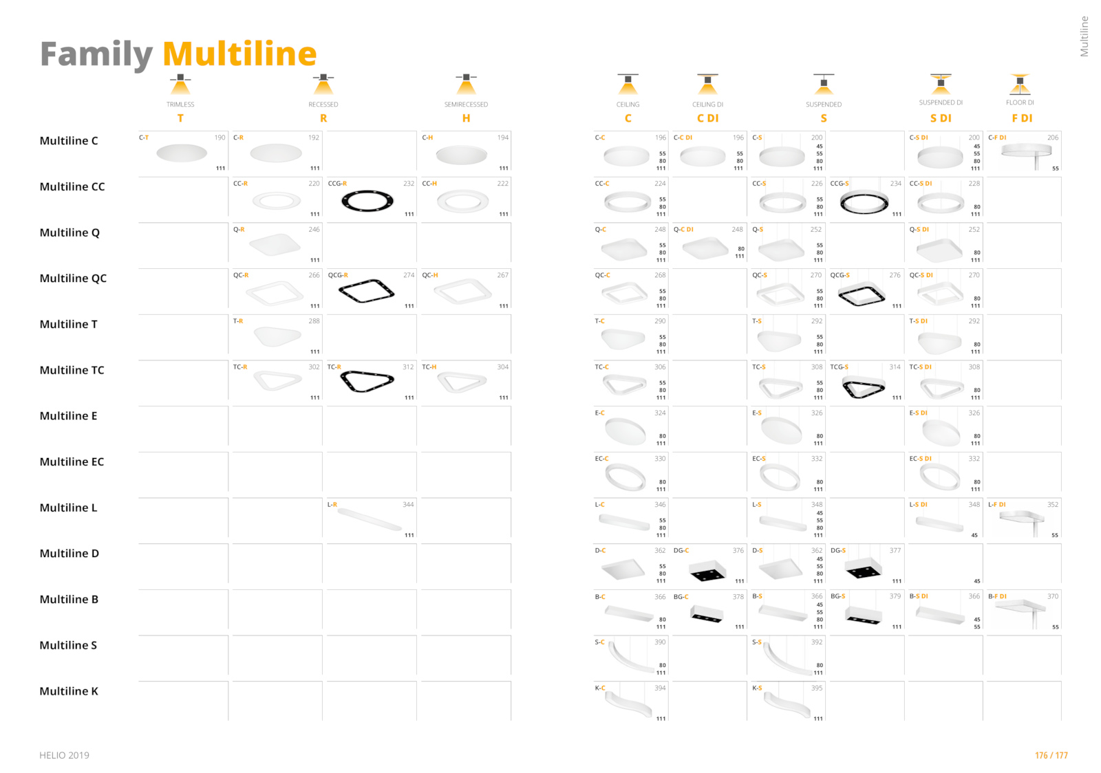177 HELIO 2019 176 / Multiline C Multiline CC Multiline Q Multiline QC Multiline T Multiline TC Multiline E Multiline EC Multiline L Multiline D Multiline B Multiline S Multiline K CEILING DI CEILING TRIMLESS RECESSED SEMIRECESSED SUSPENDED DI SUSPENDED 55 80 111 55 80 111 55 80 111 55 80 111 55 80 111 55 80 111 55 80 111 55 80 111 55 80 111 55 80 111 55 80 111 55 80 111 80 111 80 111 80 111 80 111 80 111 80 111 80 111 80 111 80 111 80 111 80 111 55 80 111 80 111 80 111 80 111 111 111 111 111 111 111 111 111 111 111 111 111 111 111 111 111 111 111 111 111 111 55 80 111 80 111 45 55 80 111 45 55 80 111 45 55 80 111 45 45 55 80 111 45 55 80 111 55 55 55 45 45 55 Family Multiline FLOOR DI T DI C DI Multiline C-T 190 C-R 192 CC-R 220 Q-R 246 T-R 288 TC-R 302 QC-R 266 TC-R 312 C-H 194 CC-H 222 QC-H 267 TC-H 304 C-C 196 CC-C 224 Q-C 248 QC-C 268 T-C 290 TC-C 306 E-C 324 EC-C 330 L-C 346 D-C 362 B-C 366 111 K-C 394 S-C 390 C-C 196 Q-C 248 DG-C 376 BG-C 378 C-S 200 CC-S 226 Q-S 252 QC-S 270 T-S 292 TC-S 308 E-S 326 EC-S 332 L-S 348 D-S 362 B-S 366 111 K-S 395 S-S 392 CCG-S 234 QCG-S 276 QC-S 270 TCG-S 314 DG-S 377 BG-S 379 C-S 200 C-F 206 L-F 352 B-F 370 L-S 348 CC-S 228 Q-S 252 T-S 292 TC-S 308 E-S 326 EC-S 332 B-S 366 CCG-R 232 QCG-R 274 111 L-R 344