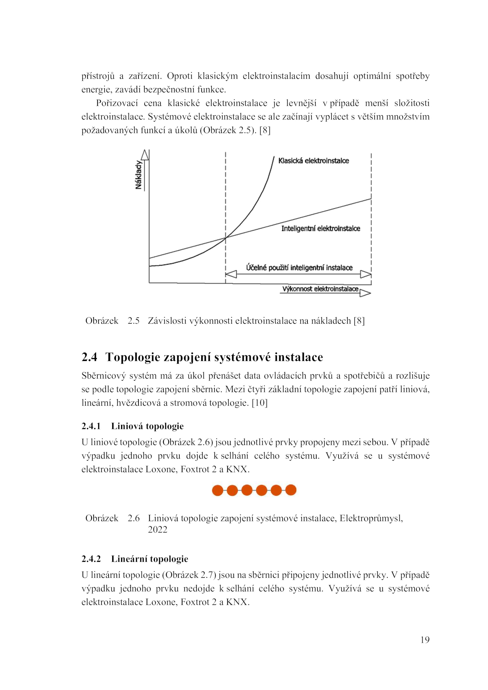 U lineární topologie (Obrázek 2. Oproti klasickým elektroinstalacím dosahují optimální spotřeby