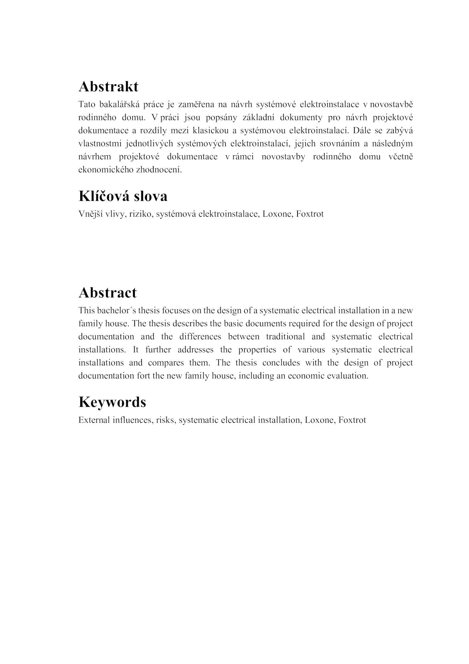 Tato bakalářská práce zaměřena návrh systémové elektroinstalace novostavbě