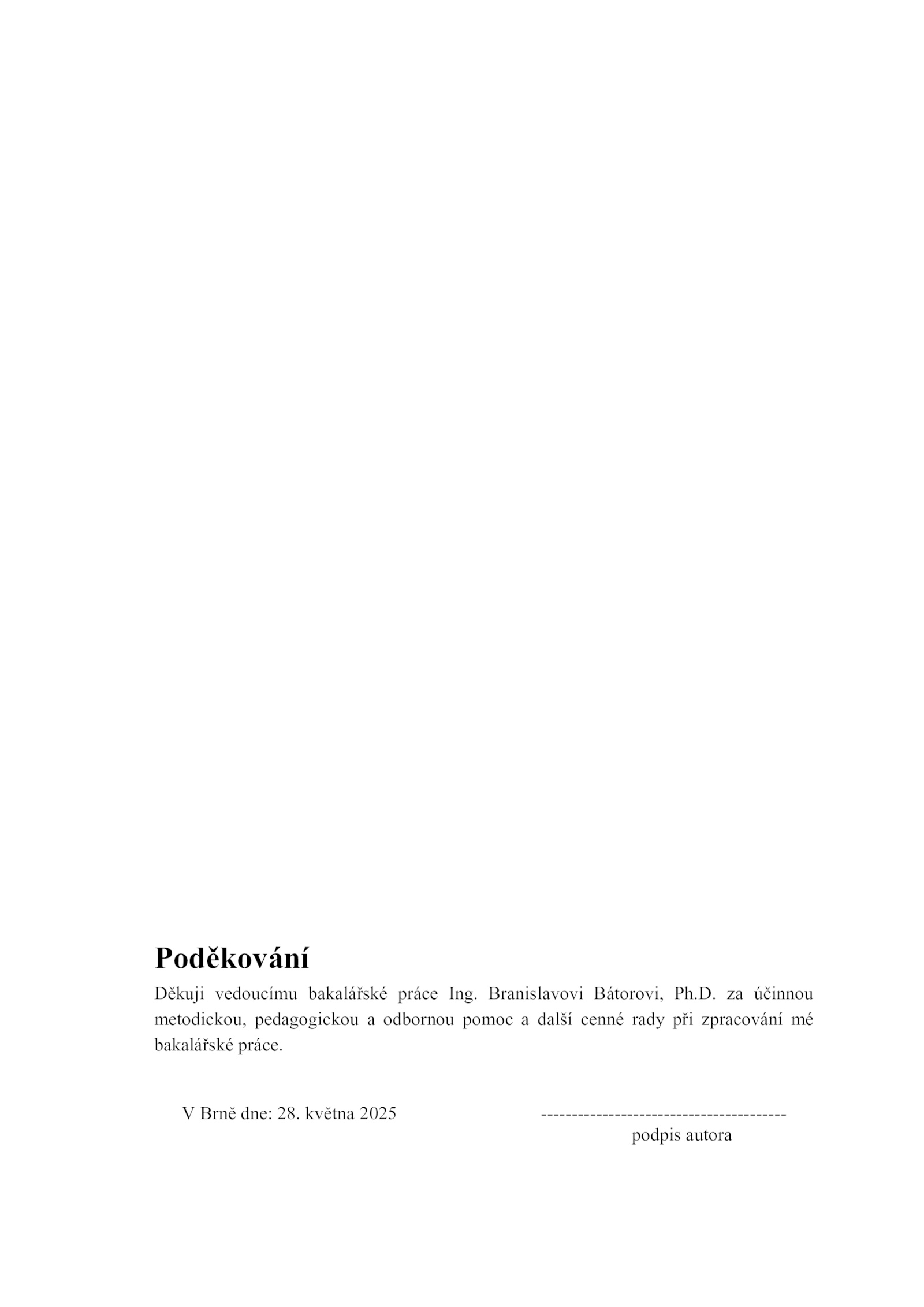 Děkuji vedoucímu bakalářské práce Ing. Branislavovi Bátorovi, Ph