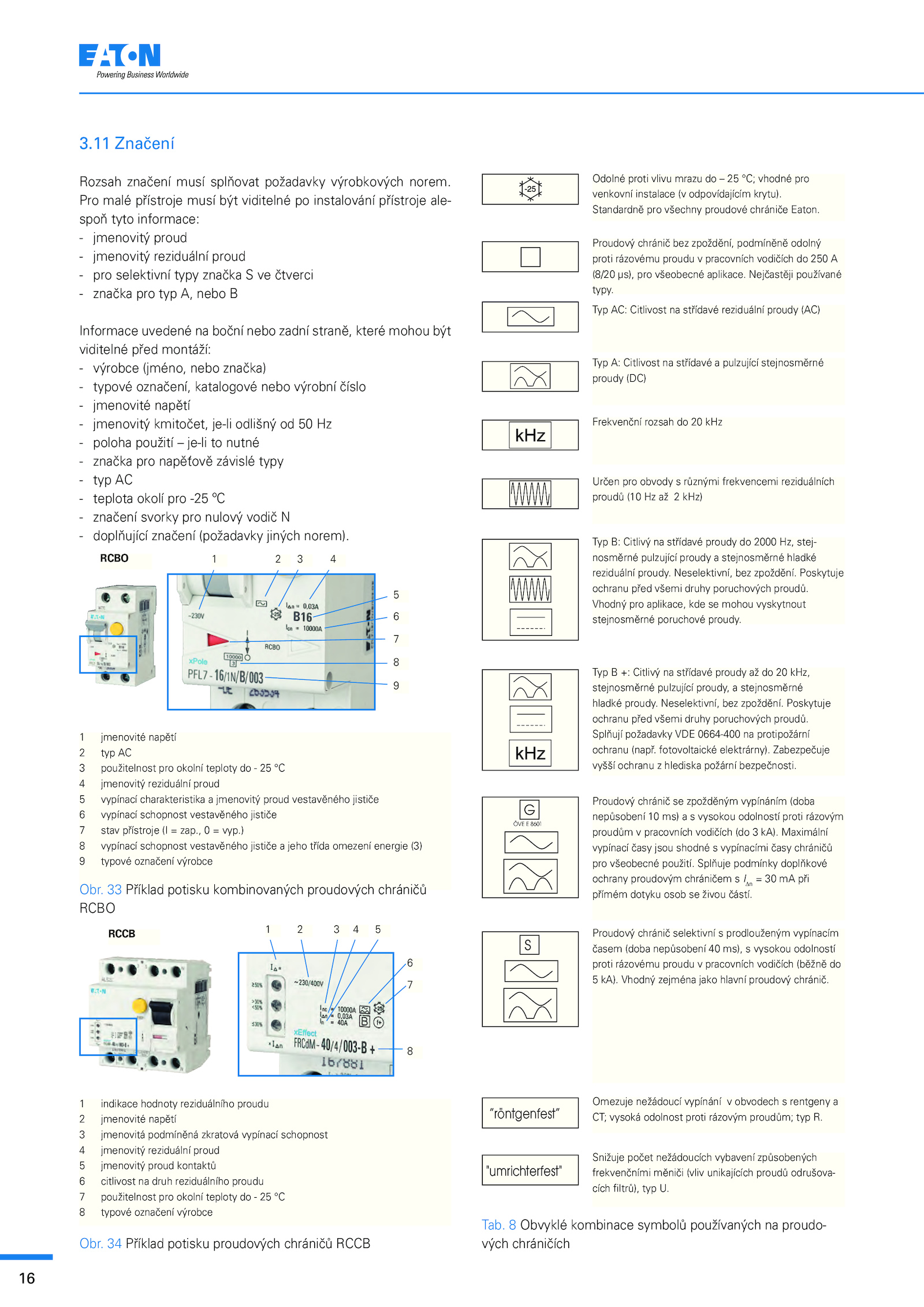 reziduální proudy. Příklad potisku kombinovaných proudových chráničů