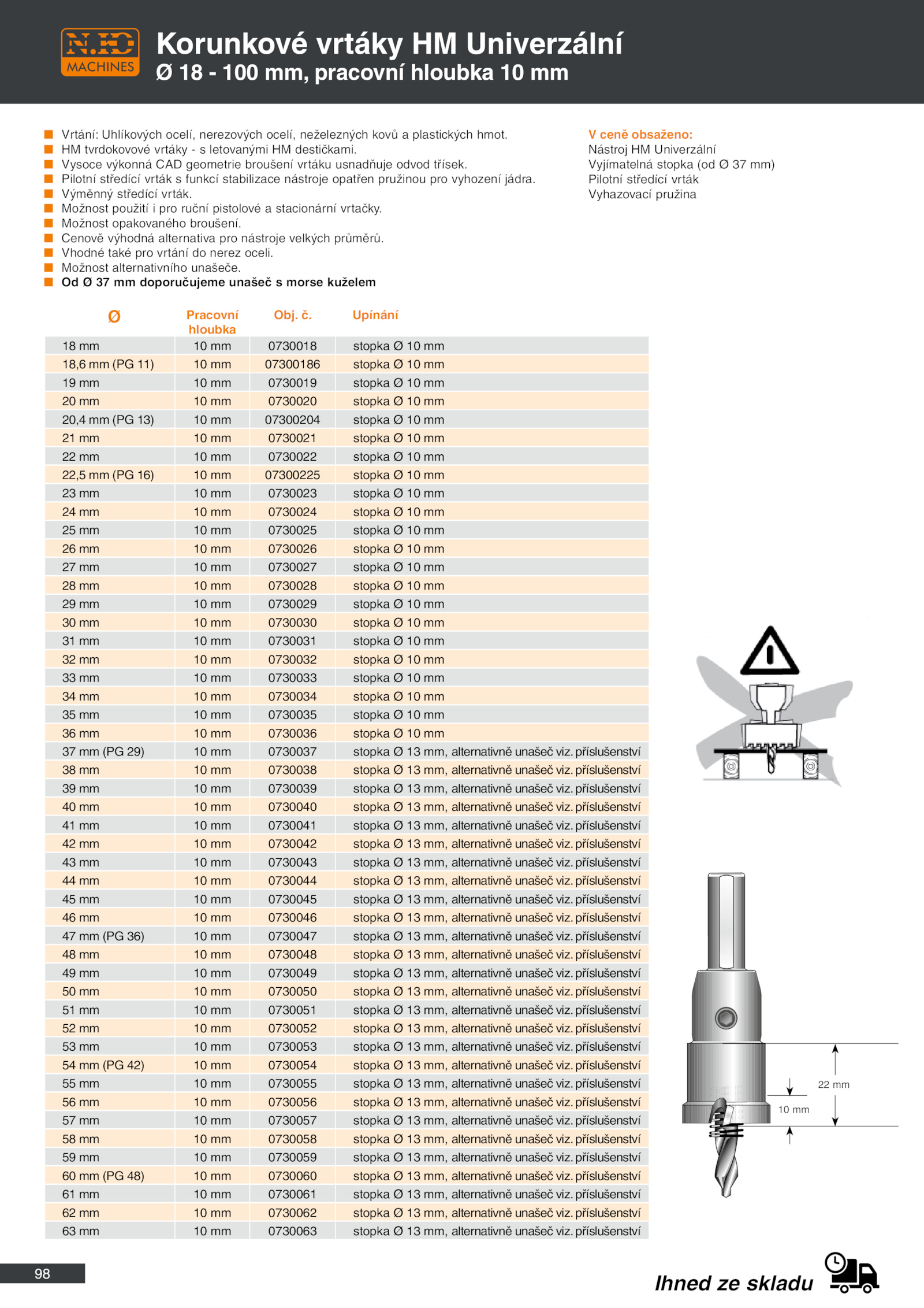 ■ Pilotní středící vrták funkcí stabilizace nástroje opatřen pružinou pro vyhození jádra. příslušenství