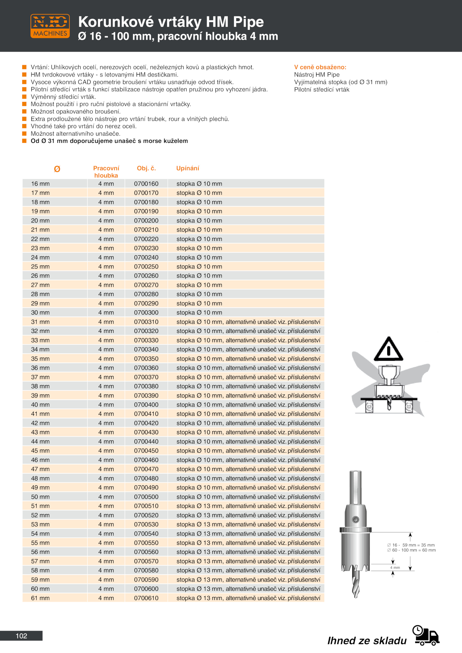 HM tvrdokovové vrtáky letovanými destičkami. příslušenství