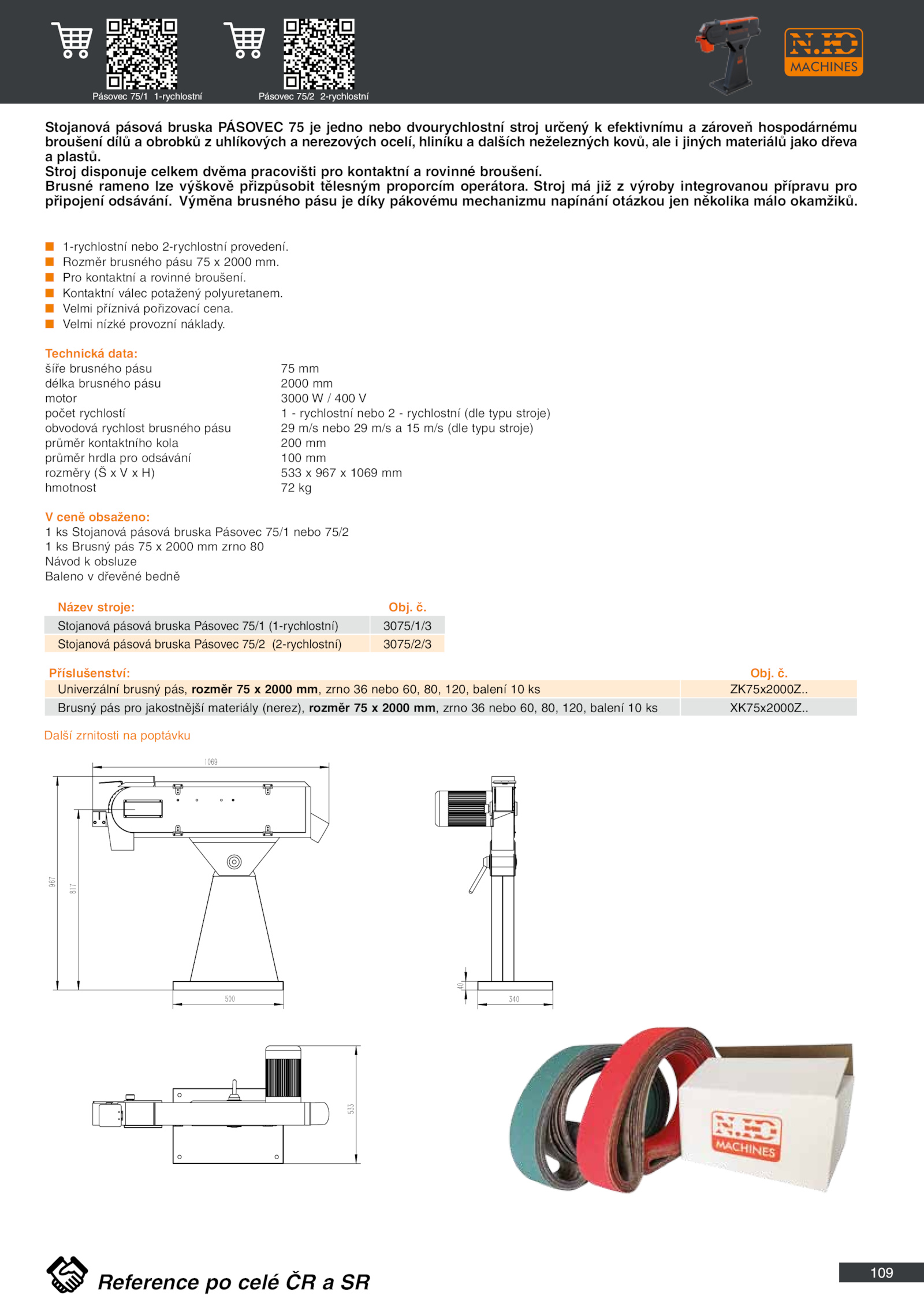 1 Stojanová pásová bruska Pásovec 75/1 nebo 75/2