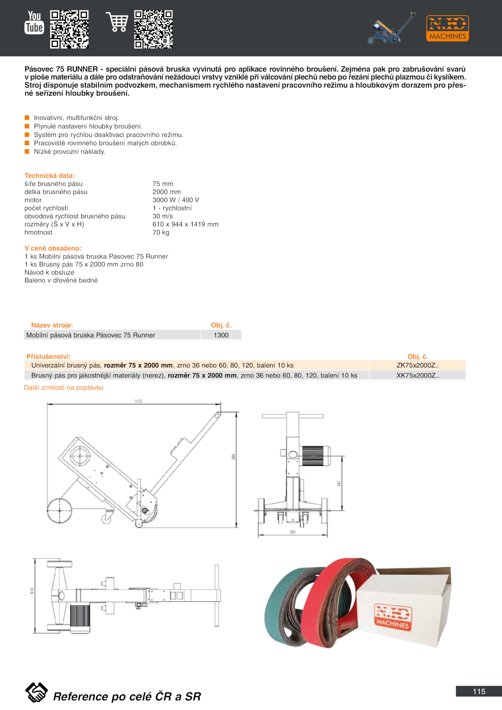 Pásovec RUNNER speciální pásová bruska vyvinutá pro aplikace rovinného broušení.