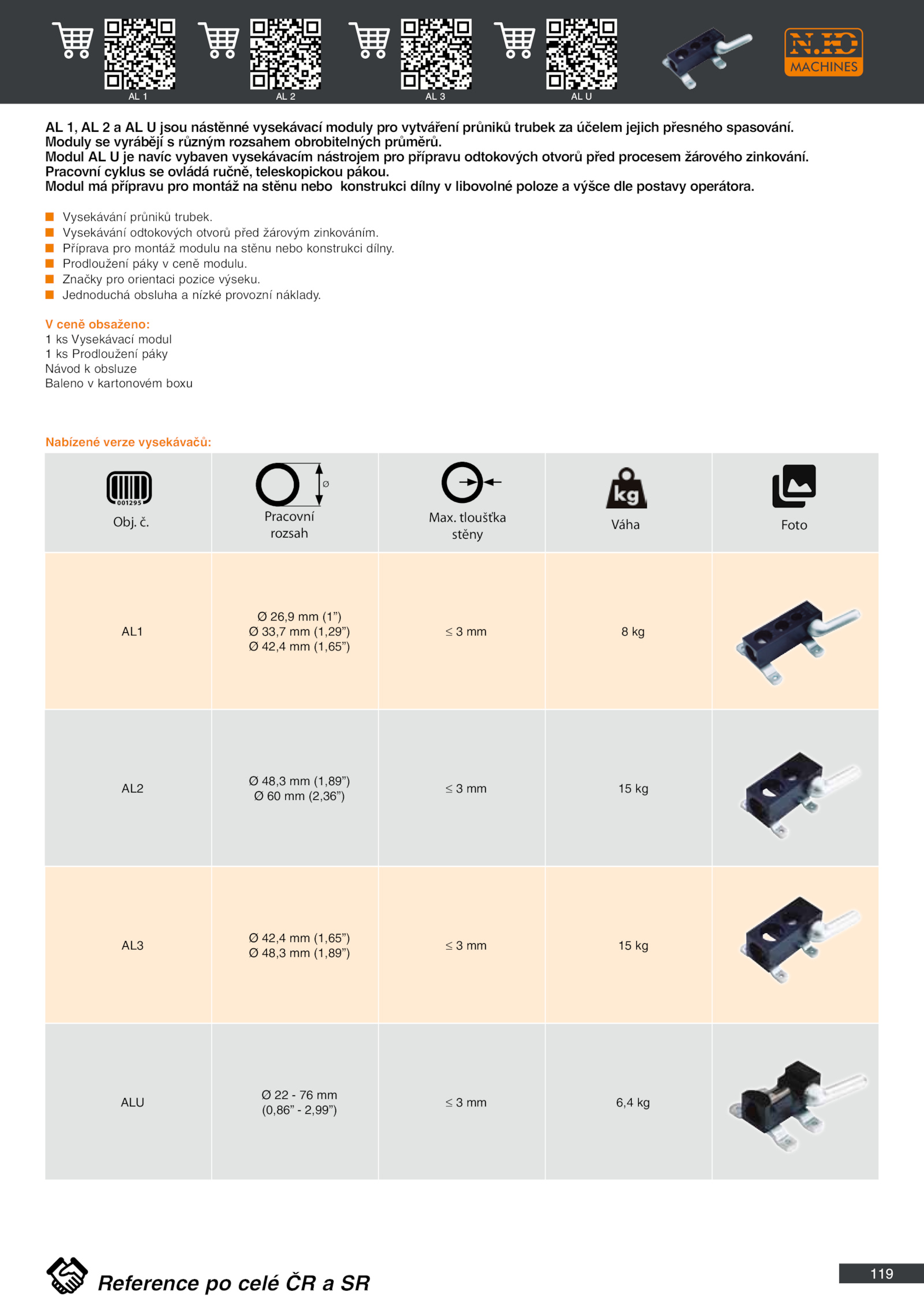 AL jsou nástěnné vysekávací moduly pro vytváření průniků trubek účelem jejich přesného spasování.