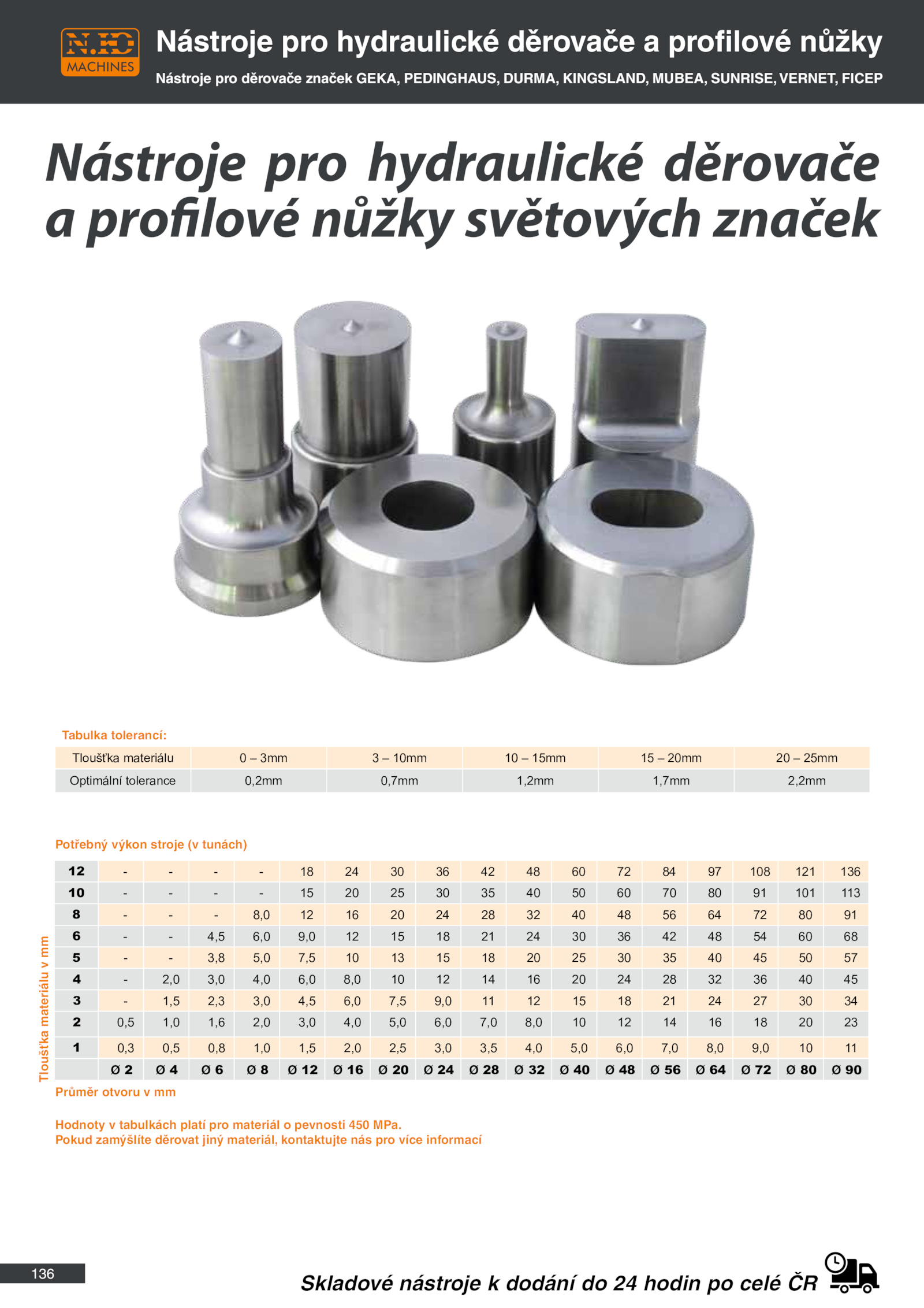 Nástroje pro děrovače značek GEKA, PEDINGHAUS, DURMA, KINGSLAND, MUBEA, SUNRISE, VERNET, FICEP