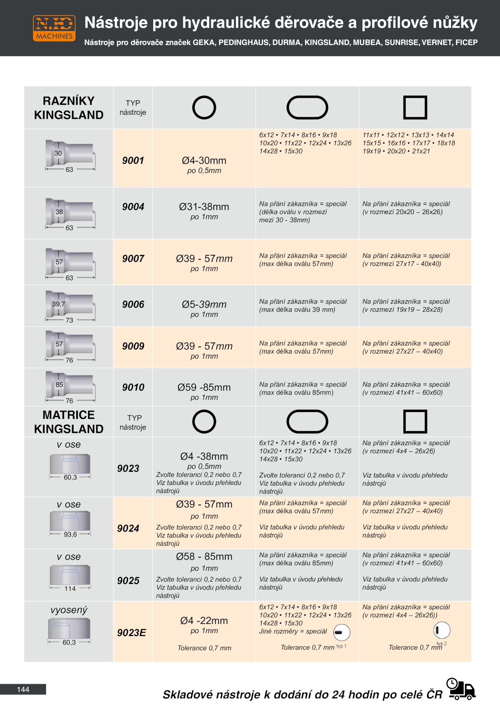 Nástroje pro děrovače značek GEKA, PEDINGHAUS, DURMA, KINGSLAND, MUBEA, SUNRISE, VERNET, FICEP