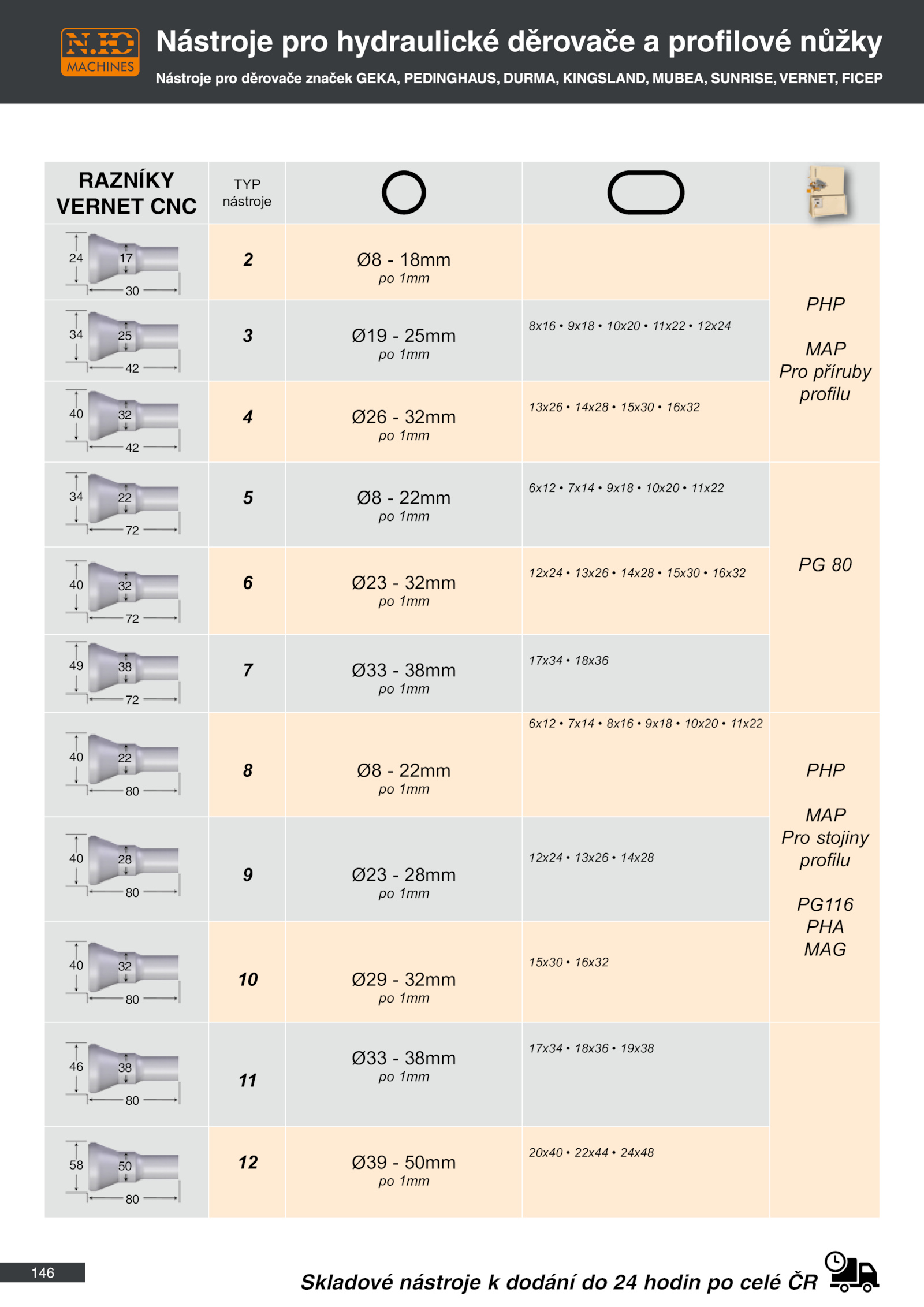 Nástroje pro děrovače značek GEKA, PEDINGHAUS, DURMA, KINGSLAND, MUBEA, SUNRISE, VERNET, FICEP