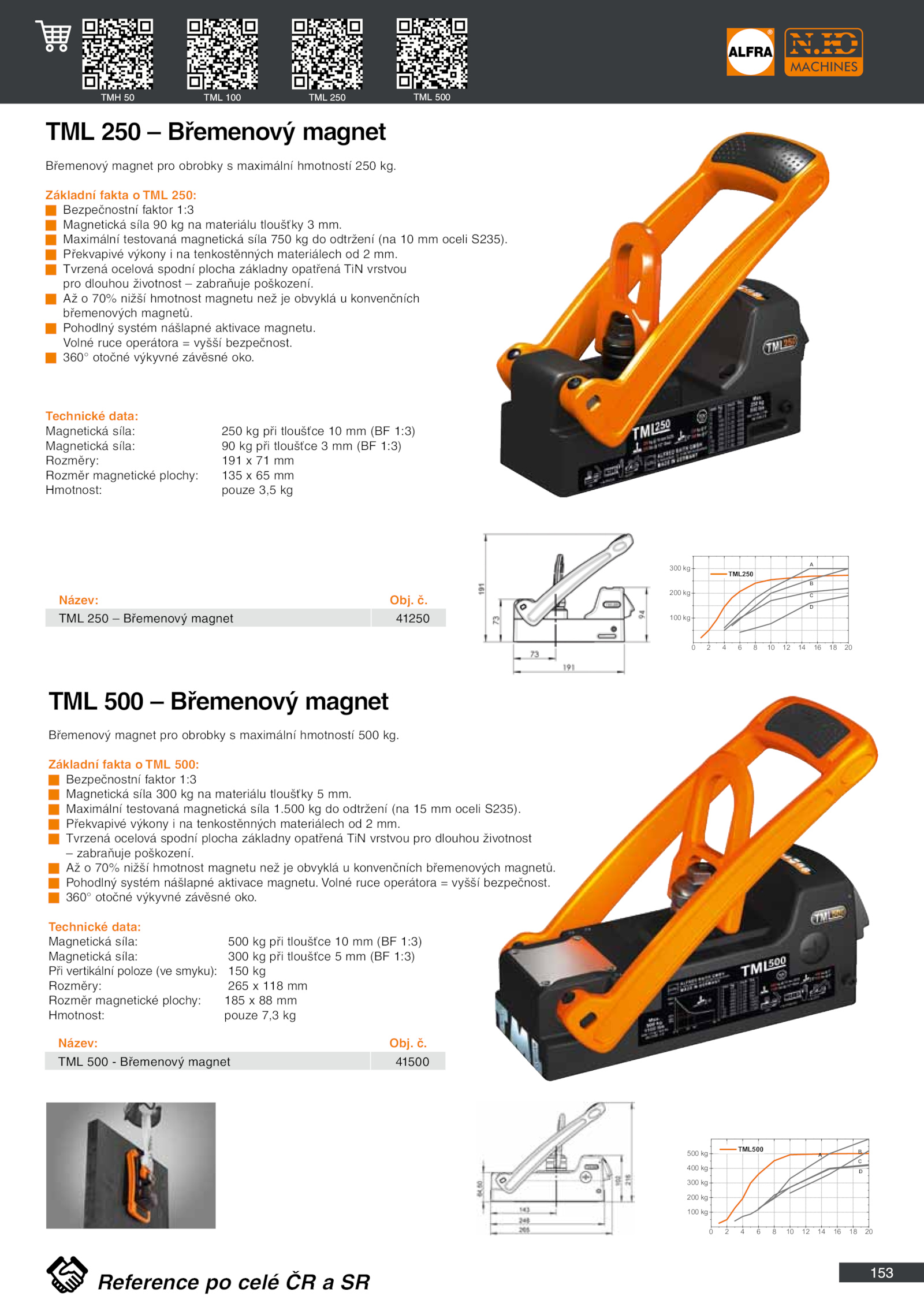 Maximální testovaná magnetická síla 750 odtržení (na oceli S235). č.500 odtržení (na oceli S235). Volné ruce operátora vyšší bezpečnost.