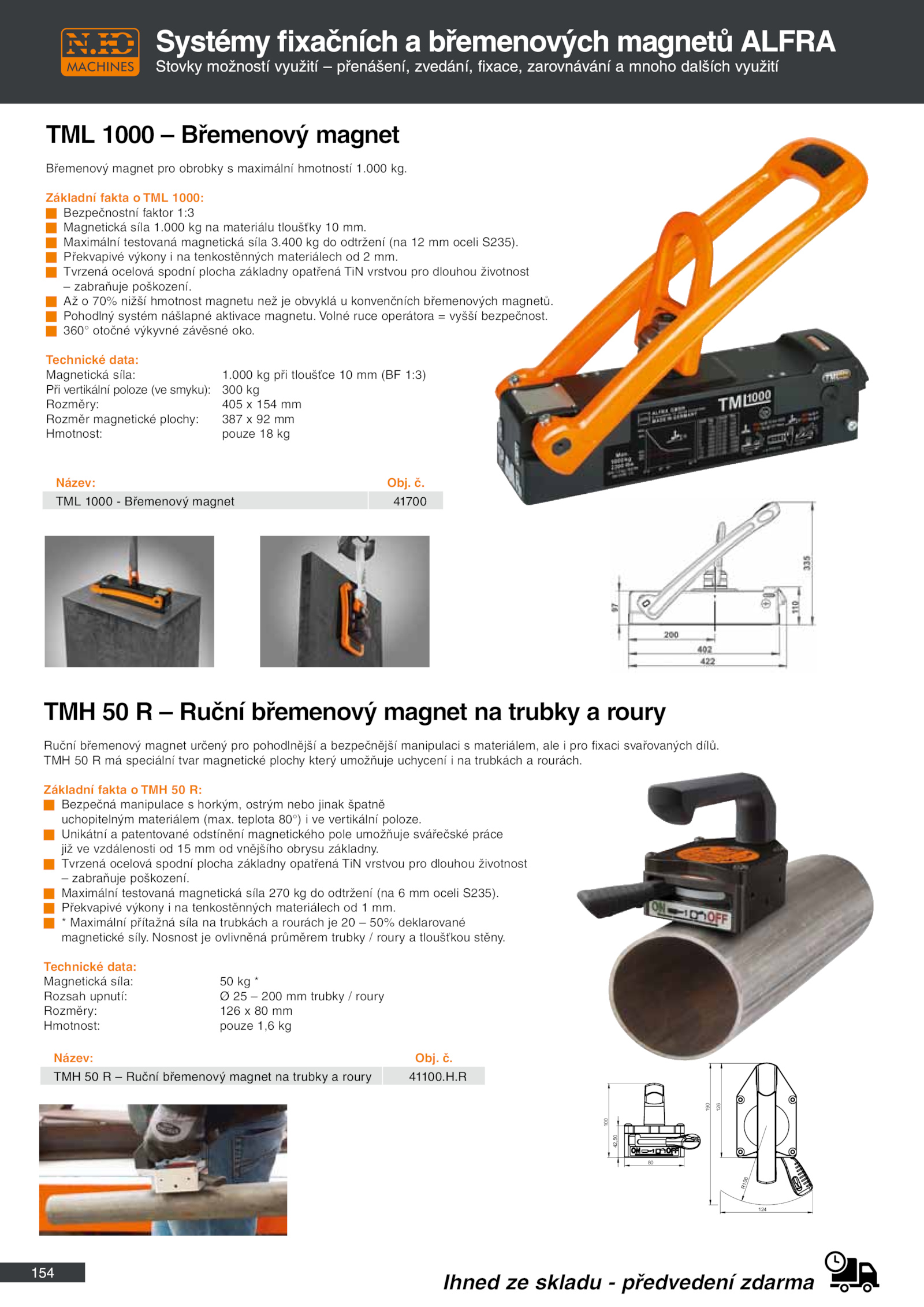 Maximální testovaná magnetická síla 3.000 kg. teplota 80°) vertikální poloze. Nosnost ovlivněná průměrem trubky roury tloušťkou stěny.