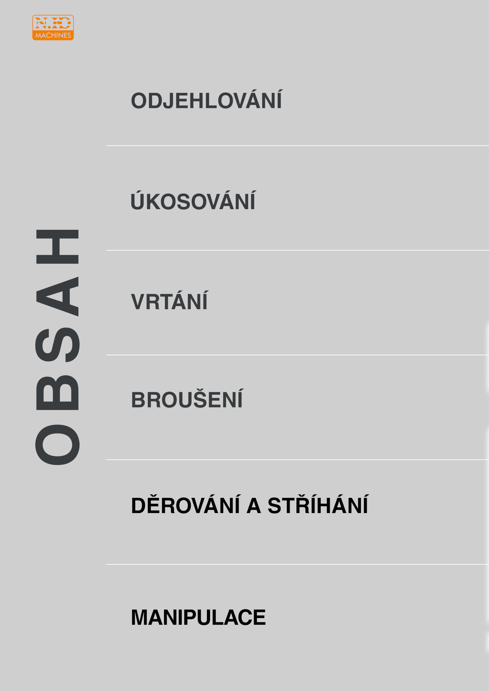 O B S A H VRTÁNÍ BROUŠENÍ MANIPULACE DĚROVÁNÍ STŘÍHÁNÍ ODJEHLOVÁNÍ ÚKOSOVÁNÍ