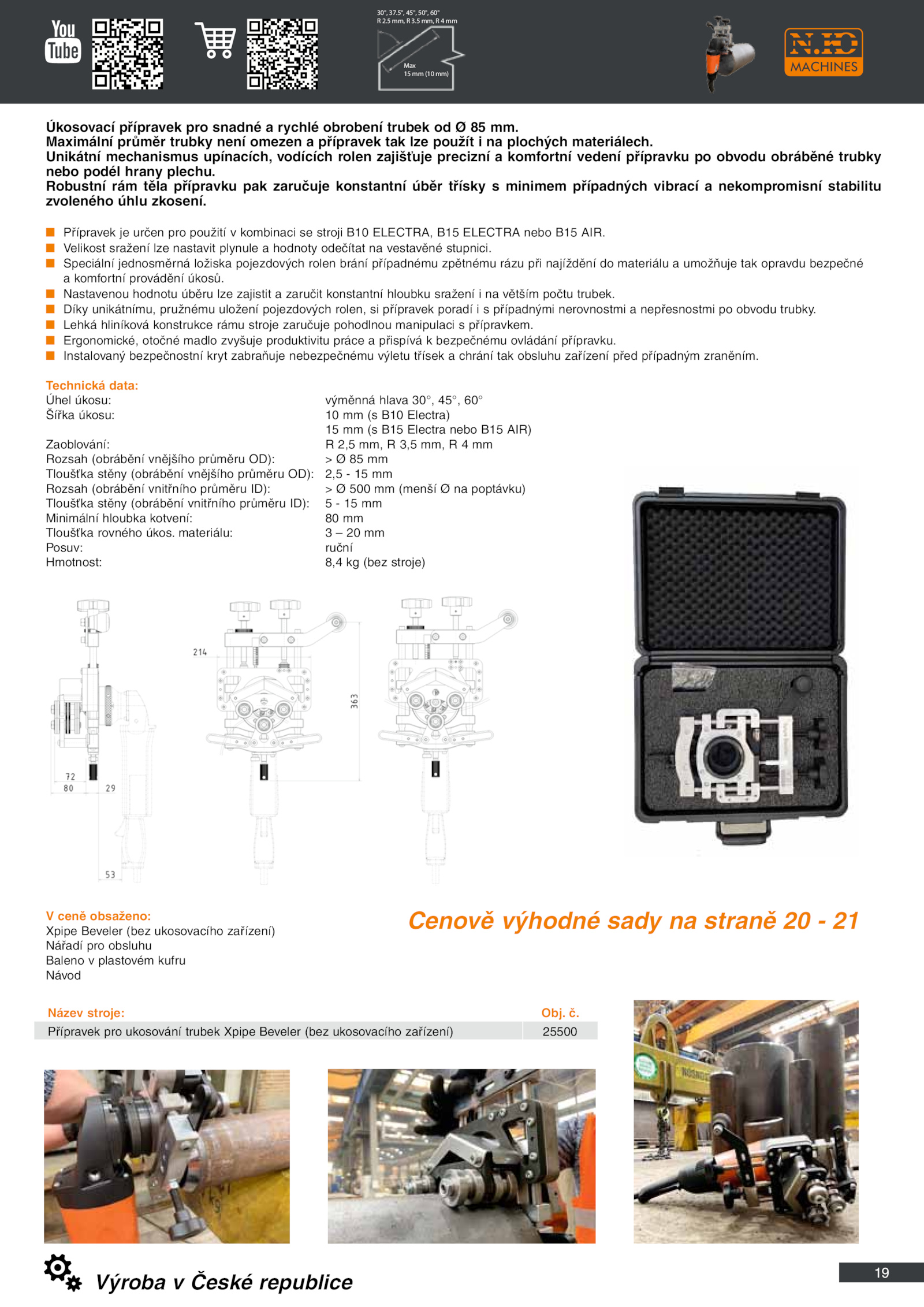 Úkosovací přípravek pro snadné rychlé obrobení trubek mm.
